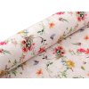 Dekorační látku s romantickými květy využijete k šití ubrusů, povlaků na polštáře, závěsů, tašek a různých bytových dekorací. Vyniká pevností a odolností.
