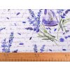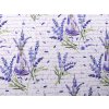 Látku s levandulovým designem ocení milovníci Provence stylu. Využijete ji na šití ubrusů, prostírání, dekoračních povlaků na polštáře, tašek, závěsů a různých bytových dekorací. Je pevná a odolná.