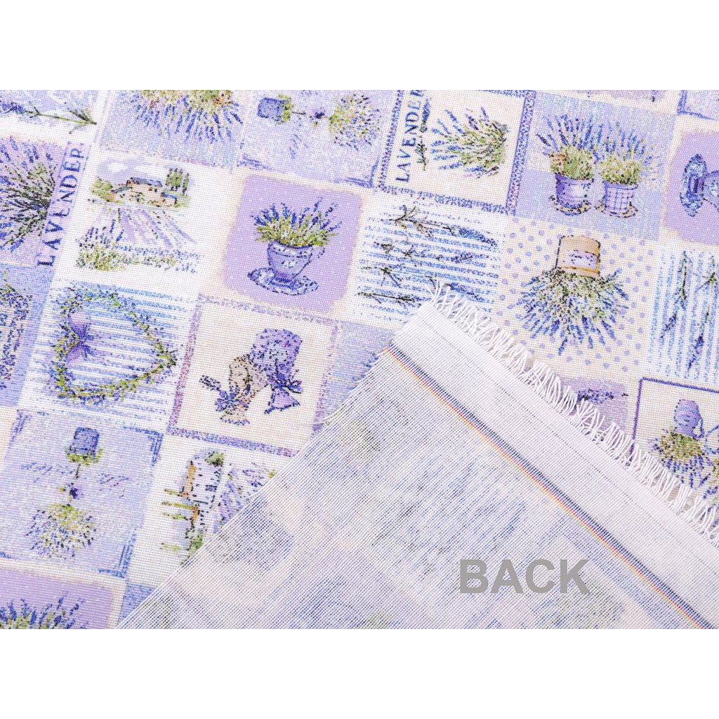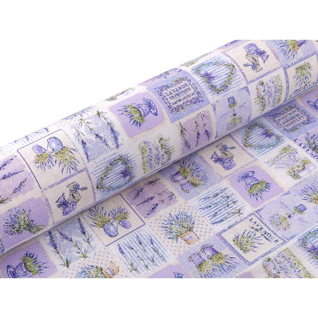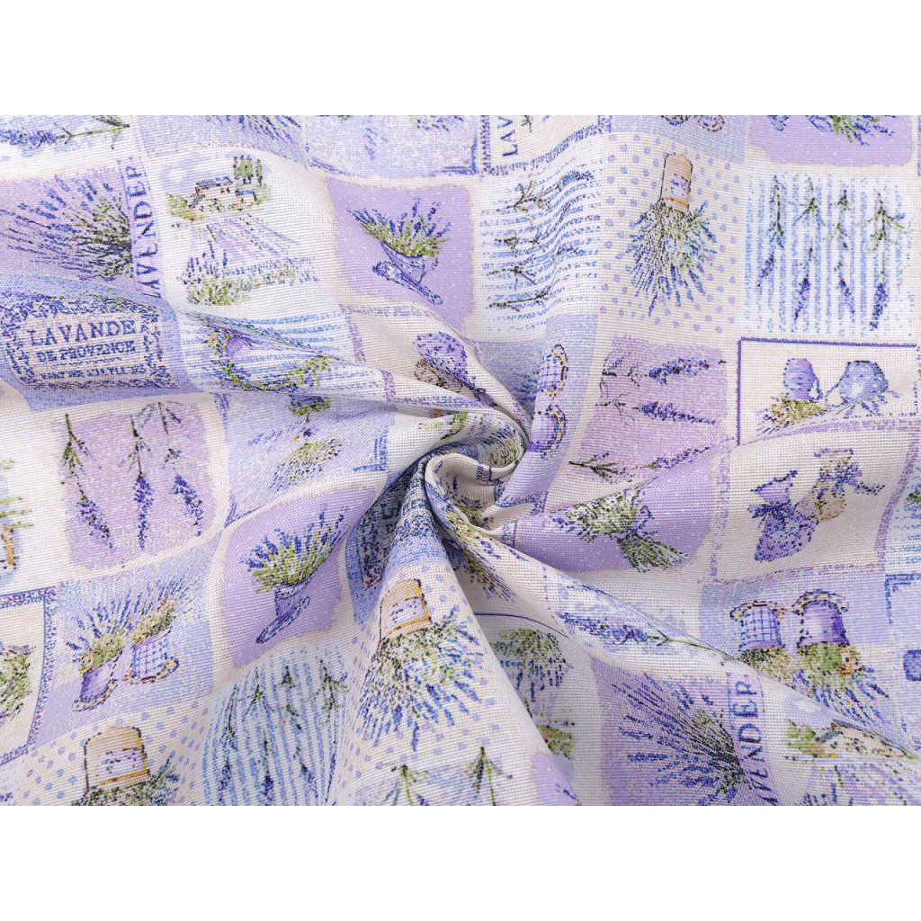 Odolnou a pevnou látku s levandulí využijete na šití ubrusů, prostírání, dekoračních povlaků na polštáře, tašek, závěsů a různých bytových dekorací.