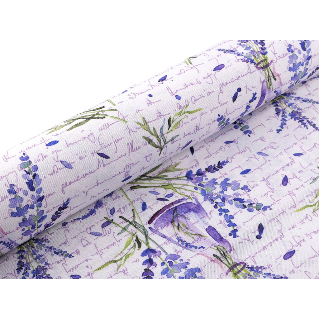 Látku s levandulovým designem ocení milovníci Provence stylu. Využijete ji na šití ubrusů, prostírání, dekoračních povlaků na polštáře, tašek, závěsů a různých bytových dekorací. Je pevná a odolná.