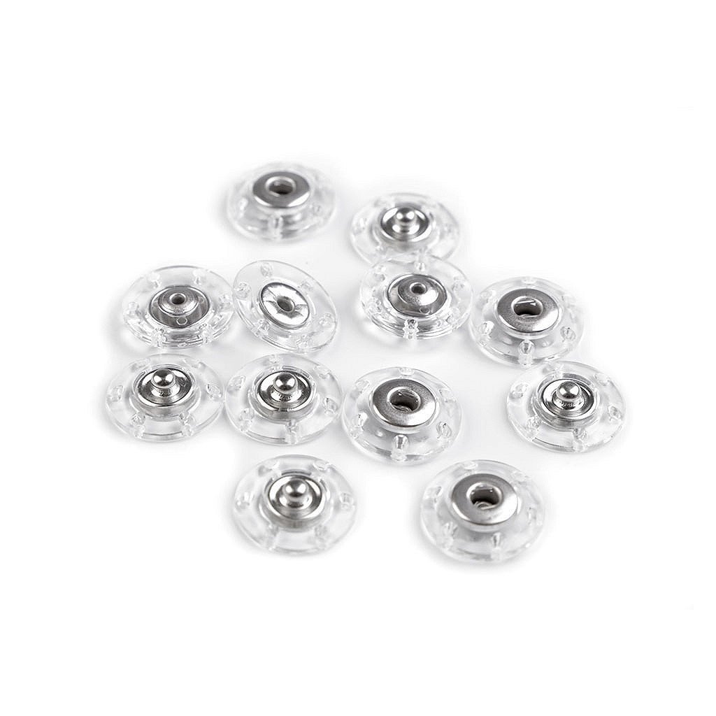 Designové plastové patentky jsou částečně transparentní. Podél okraje mají otvory, kterými je pohodlně našijete na látku. Mají široké využití.Využijete je jako zapínání na tašky, kabelky, kabáty, bundy, mikiny atd.