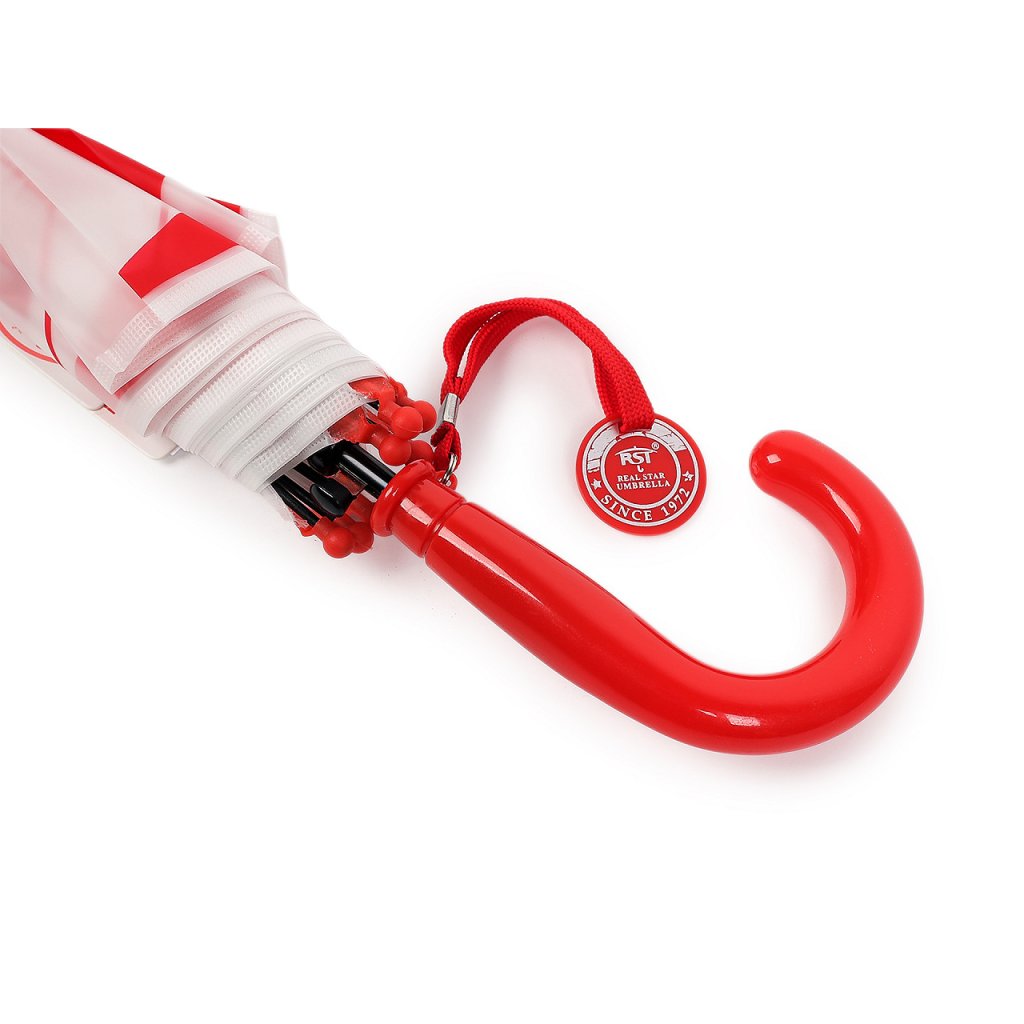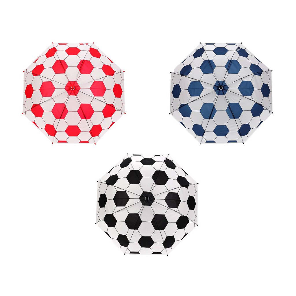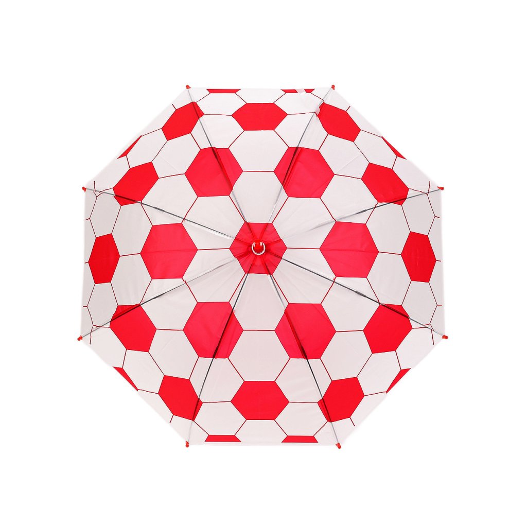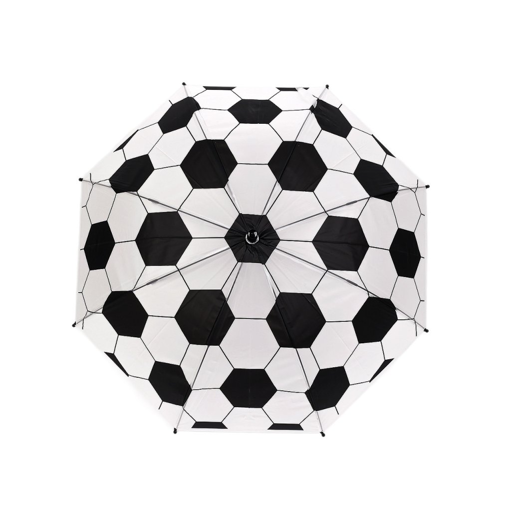 Dětský vystřelovací deštník s fotbalovým motivem potěší hlavně malé fotbalisty. je ideálním společníkem pro malé sportovní nadšence. Díky svému atraktivnímu designu, který připomíná fotbalový míč, si ho děti okamžitě oblíbí. Potah je průsvitný, na rukojeti má deštník visačku, na kterou můžete napsat jméno dítěte. Má klasickou tyč zakončenou pevnou rukojetí. Konstrukce deštníku je z pružných lamel a tvoří osm polí.