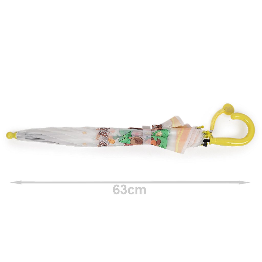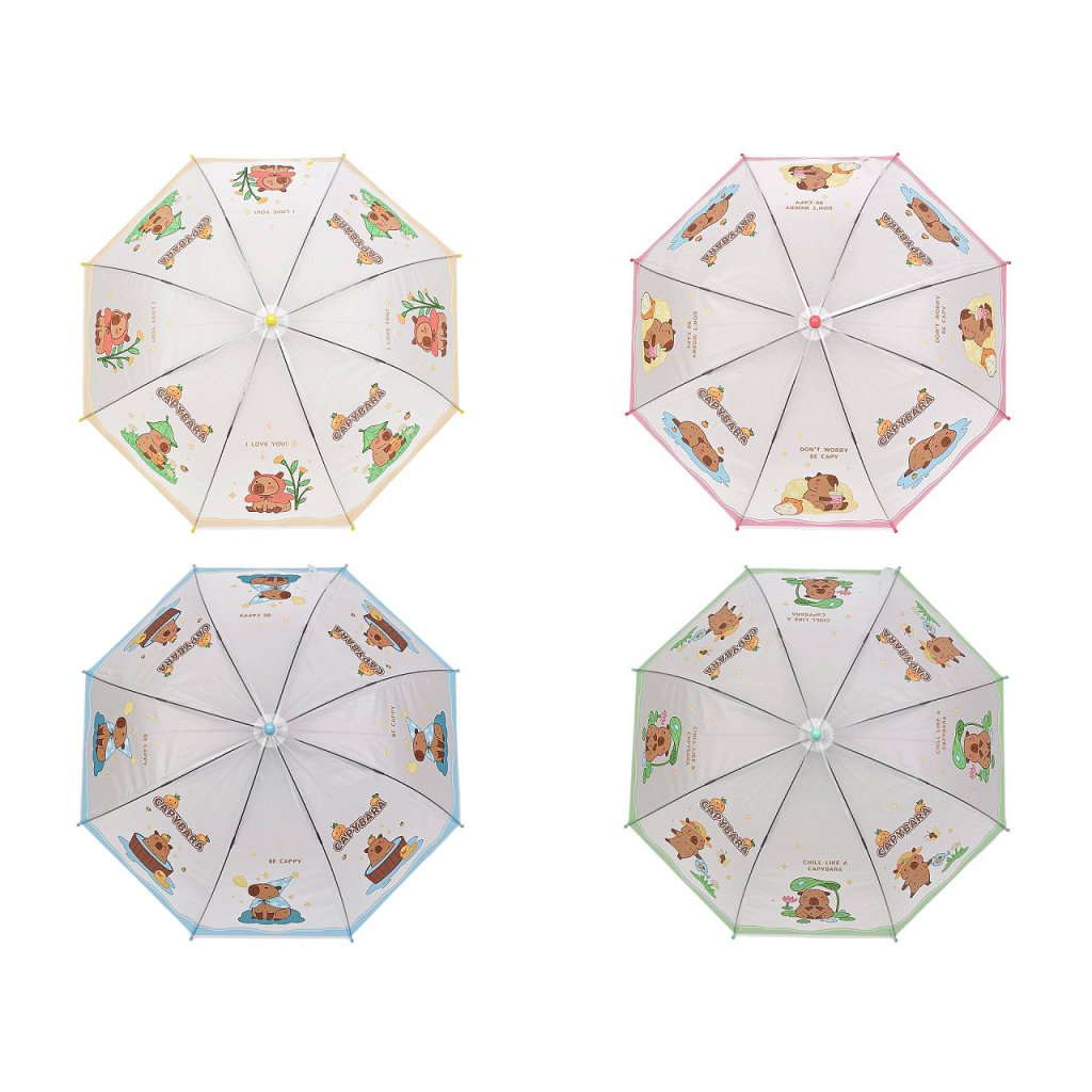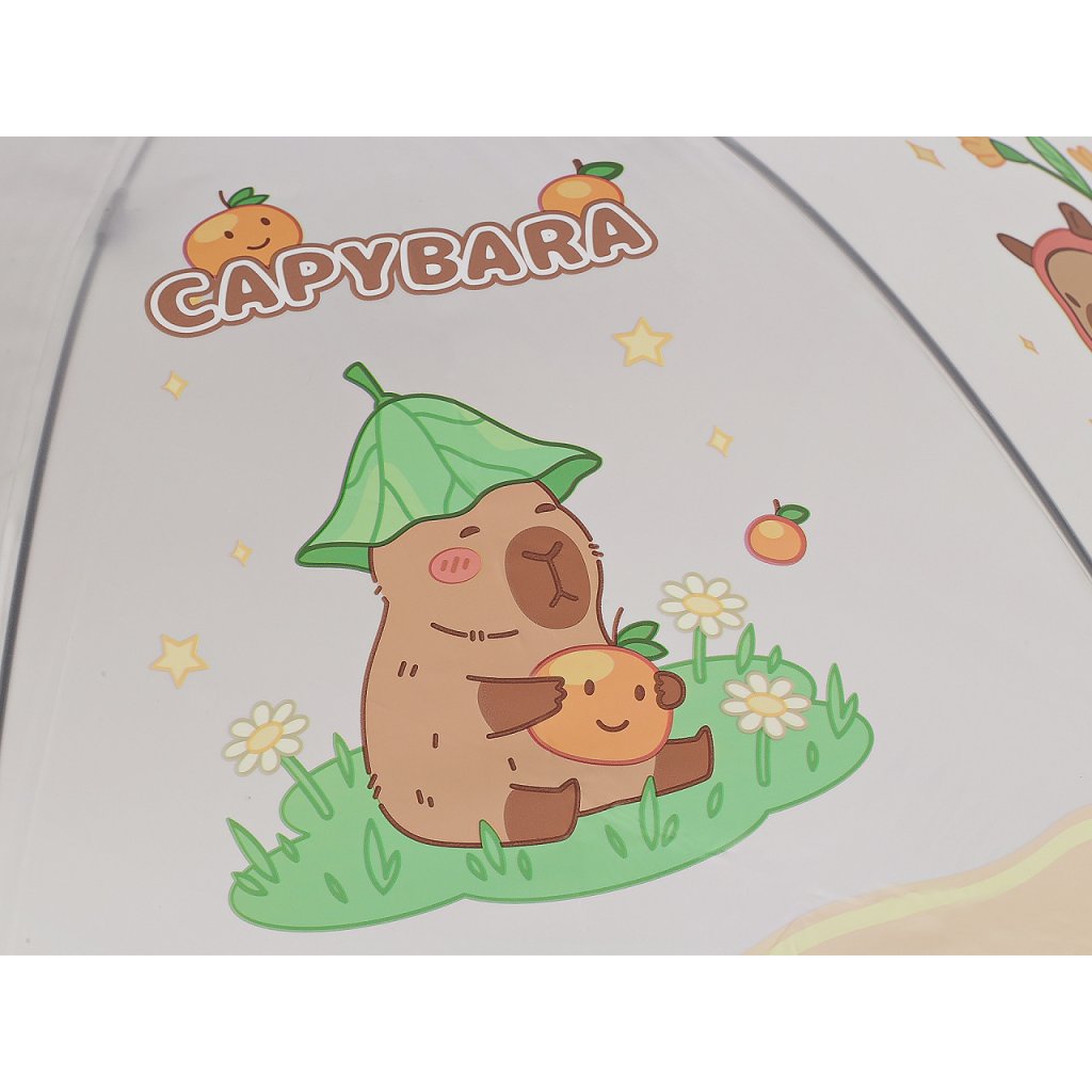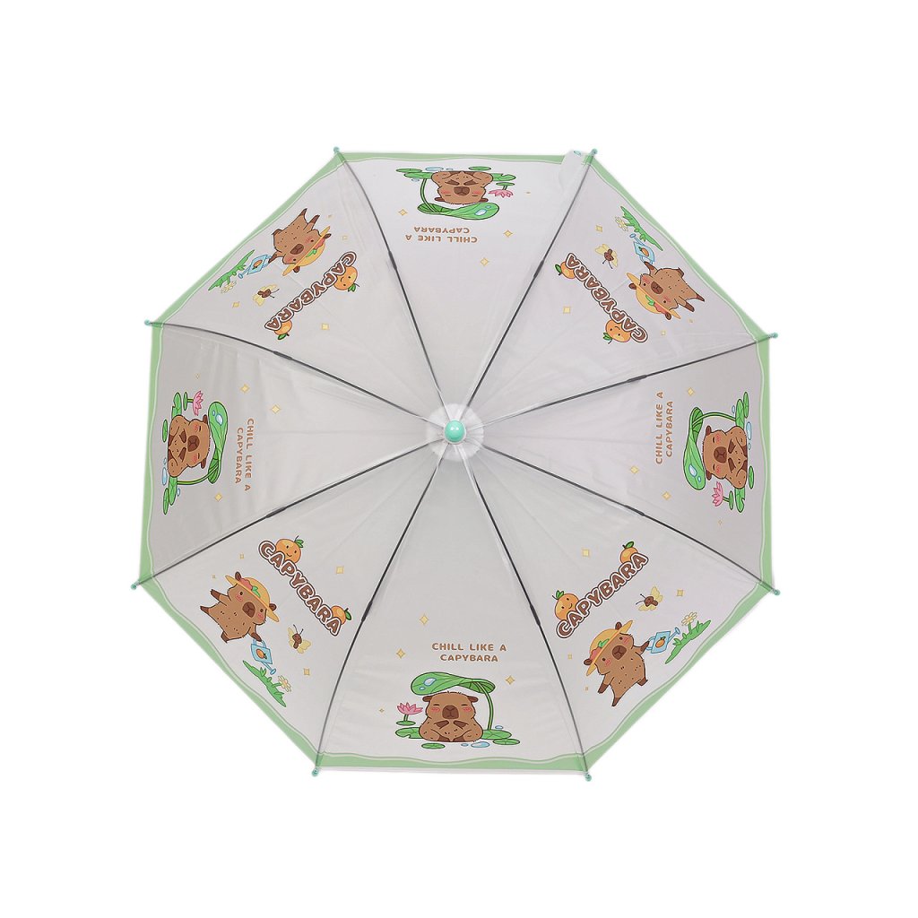 Dětský vystřelovací deštník s motivem kapybary je ideálním společníkem pro deštivé dny. Tento deštník je navržený s ohledem na potřeby dětí, kombinuje stylový vzhled s praktičností. Potah je průsvitný, na rukojeti má deštník visačku, na kterou můžete napsat jméno dítěte. Má klasickou tyč zakončenou pevnou rukojetí. Konstrukce deštníku je z pružných lamel a tvoří osm polí.