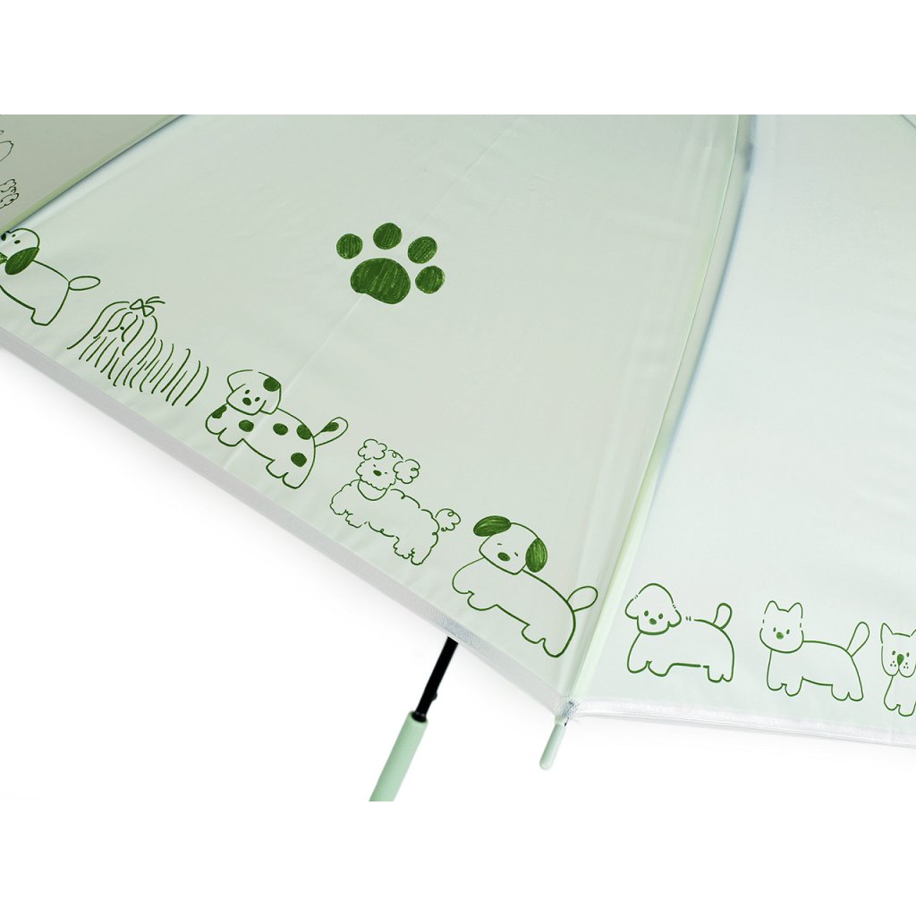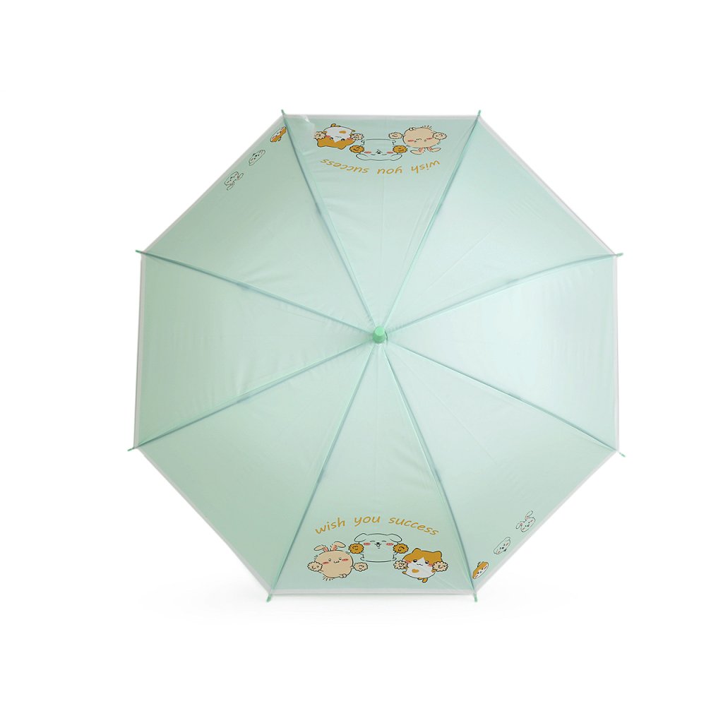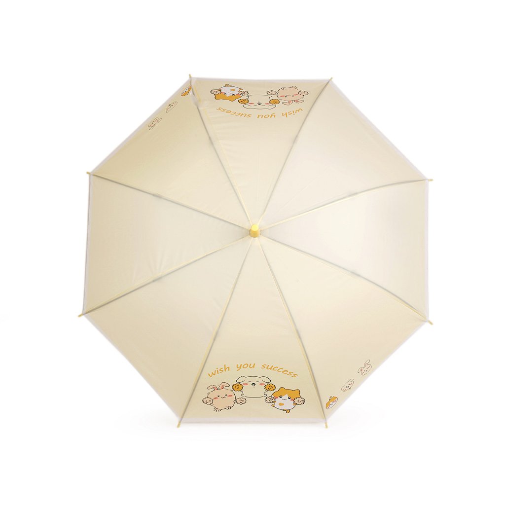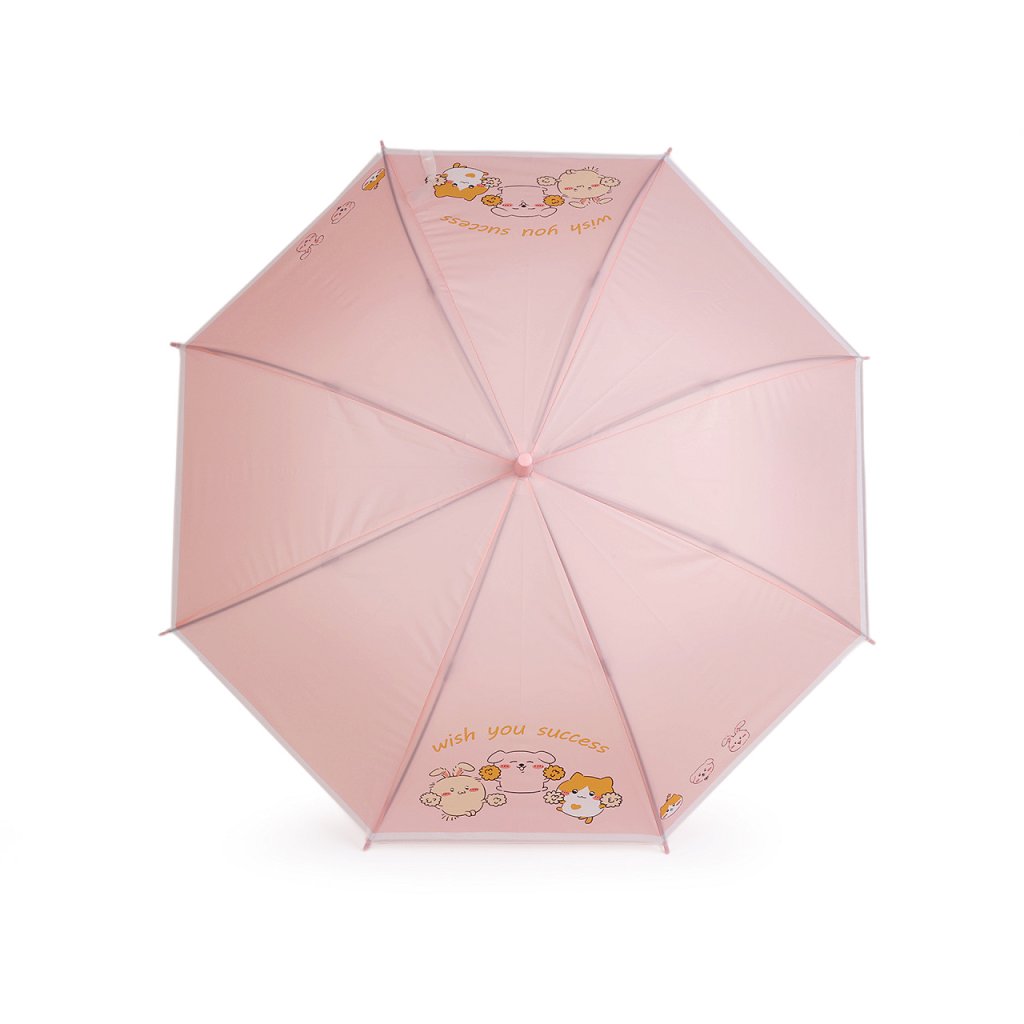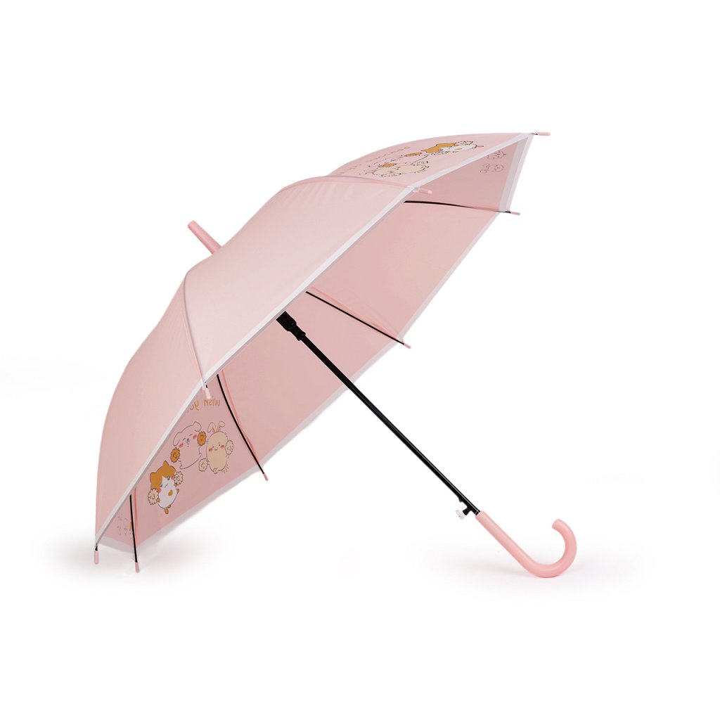 Dětský deštník s jednobarevným potahem s potiskem zvířátek v módních pastelových barvách má už větší velikost. Hodí se pro děti od cca 8 let. Deštník je vystřelovací, má klasickou tyč zakončenou pevnou rukojetí. Konstrukce deštníku je z kovového drátu a pružných lamel, tvoří osm polí. Díky nim je velice pevný, neohne se ani za největšího nečasu.