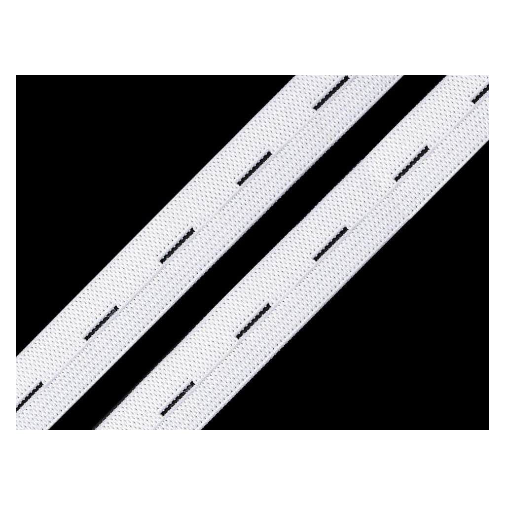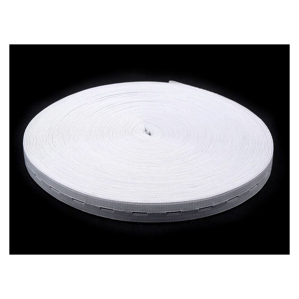 Použití: Pruženku využijete na zřasení lemu. Na vnitřní stranu látky přišijete knoflíky a připnutím na dírku regulujete zřasení. Je vhodná také na regulaci pasu kalhot či sukní.Na pruženku je vhodné použít knoflíky o velikosti 16" - 26".