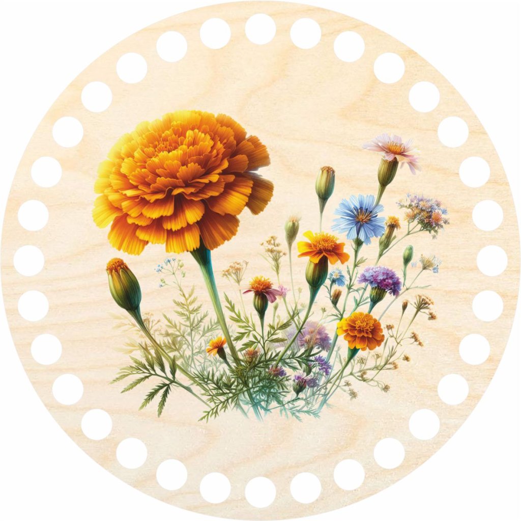 Kruhové dno z březové překližky s motivem květu afrikána o průměru 15 cm je pevným základem pro háčkované košíky, které lze také využít jako stylové víko. S tloušťkou 3 mm a průměrem 15 cm poskytuje dostatečnou pevnost pro váš košík a dodává každému výtvoru přirozený a esteticky příjemný vzhled.