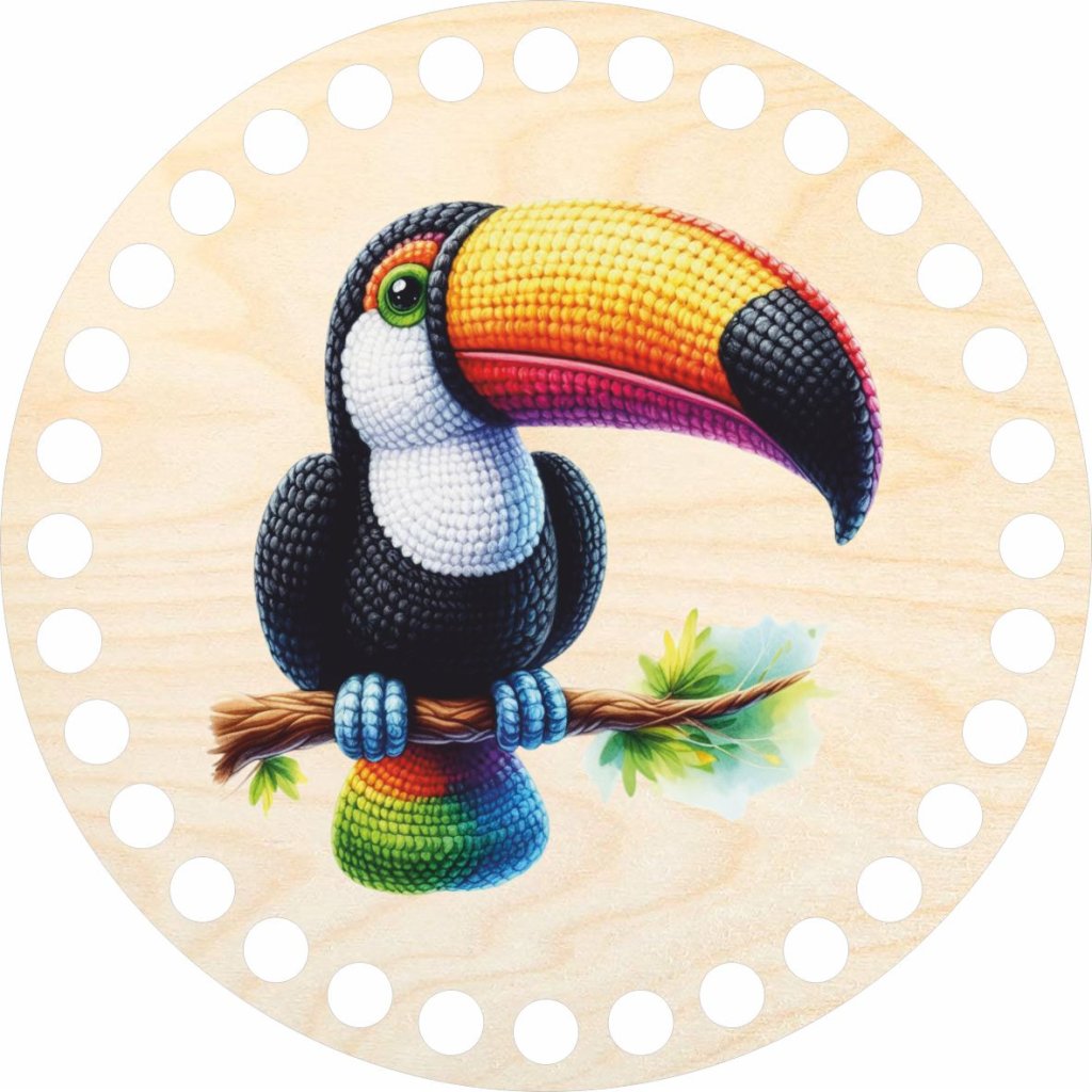 Dno, víko, kruh 15 cm, Háčkovaný tukan
