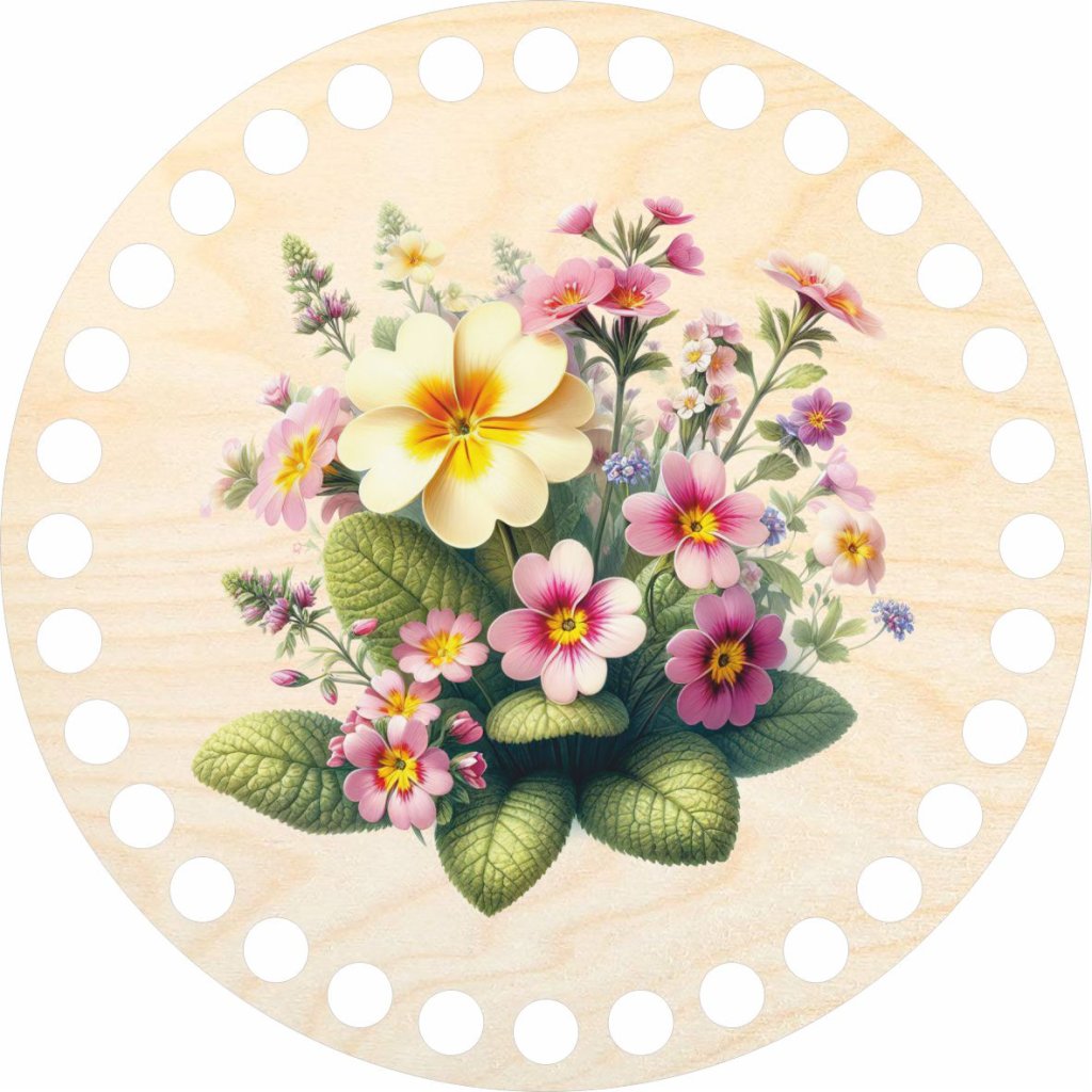 Tento kruhový výřez z březové překližky je ideální volbou pro milovníky háčkování, kteří touží po vytvoření košíků s autentickým přírodním vzhledem. S průměrem 15 cm a 3 mm silným materiálem poskytuje pevnou základnu pro vaše ručně vyráběné košíky. Jeho povrch je ozvláštněný krásným motivem květů primulek, který je aplikován pomocí UV tisku pro dlouhotrvající barvy a odolnost proti vyblednutí. Tento způsob tisku zaručuje, že motiv zůstane živý a čistý i při častém používání.