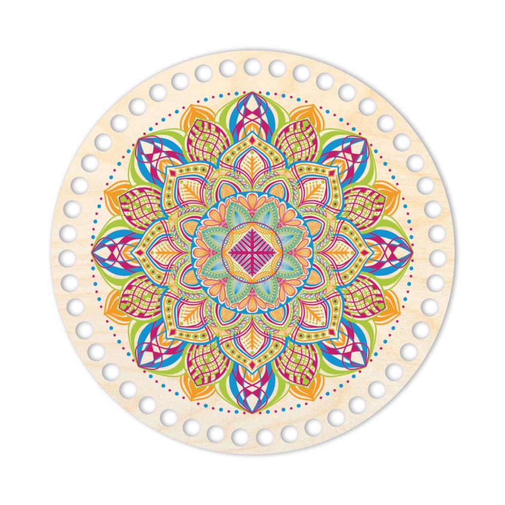 Toto kruhové dno z březové překližky s motivem o průměru 20 cm je nejen pevným základem pro háčkované košíky, ale také jej lze využít jako stylové víko.
