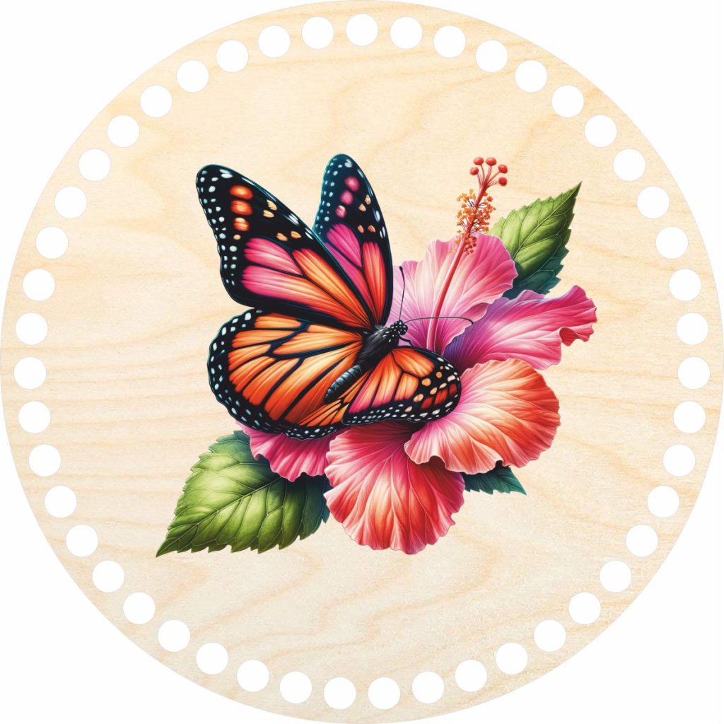Tento kruhový výřez z březové překližky je ideální volbou pro milovníky háčkování, kteří touží po vytvoření košíků s autentickým přírodním vzhledem. S průměrem 20 cm a 3 mm silným materiálem poskytuje pevnou základnu pro vaše ručně vyráběné košíky. Jeho povrch je ozvláštněný krásným motivem motýla sedícího na ibišku, který je aplikován pomocí UV tisku pro dlouhotrvající barvy a odolnost proti vyblednutí. Tento způsob tisku zaručuje, že motiv zůstane živý a čistý i při častém používání.