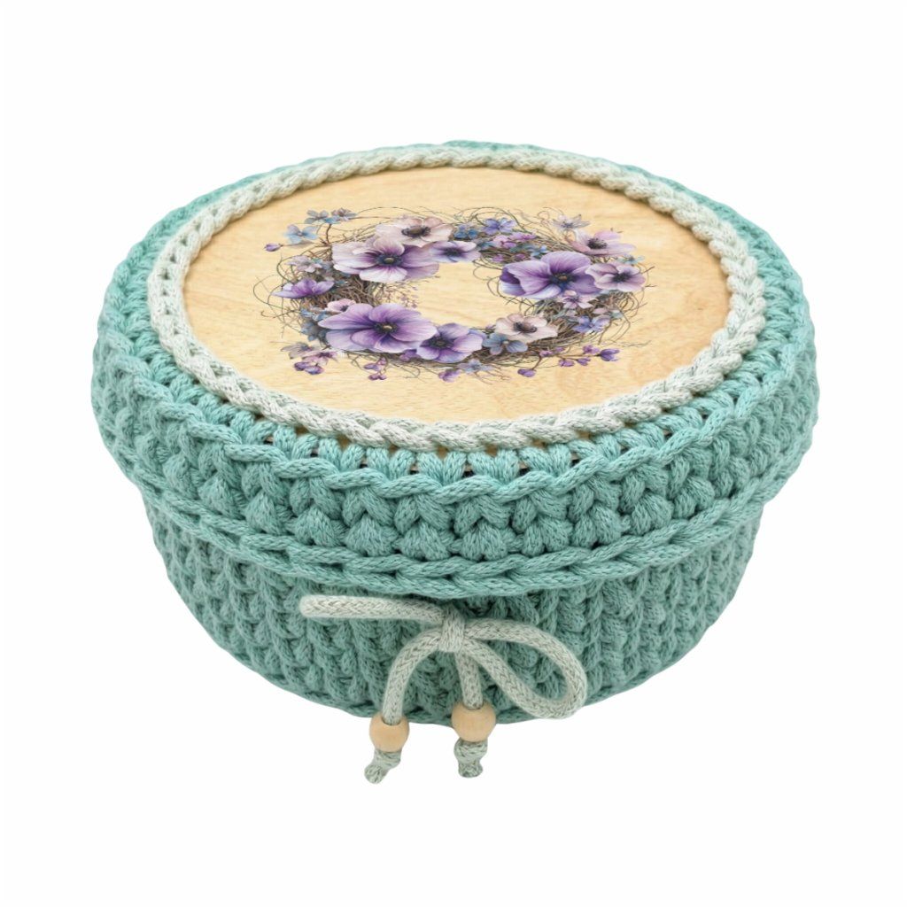 Víko na košík k obháčkování - Fialový věnec