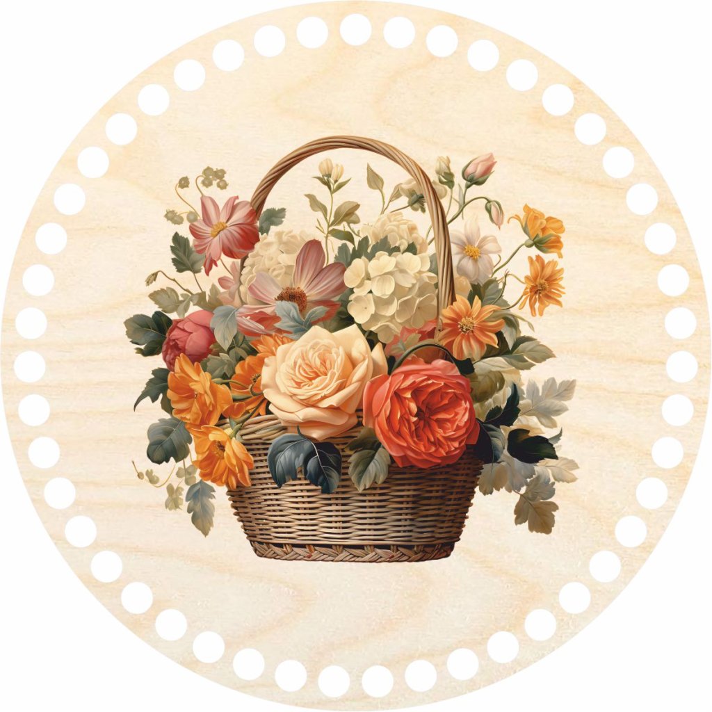 Víko pro košíky vyráběné ze špagetových přízí. Motiv je vytištěn UV tiskárnou na víko z březové překližky.