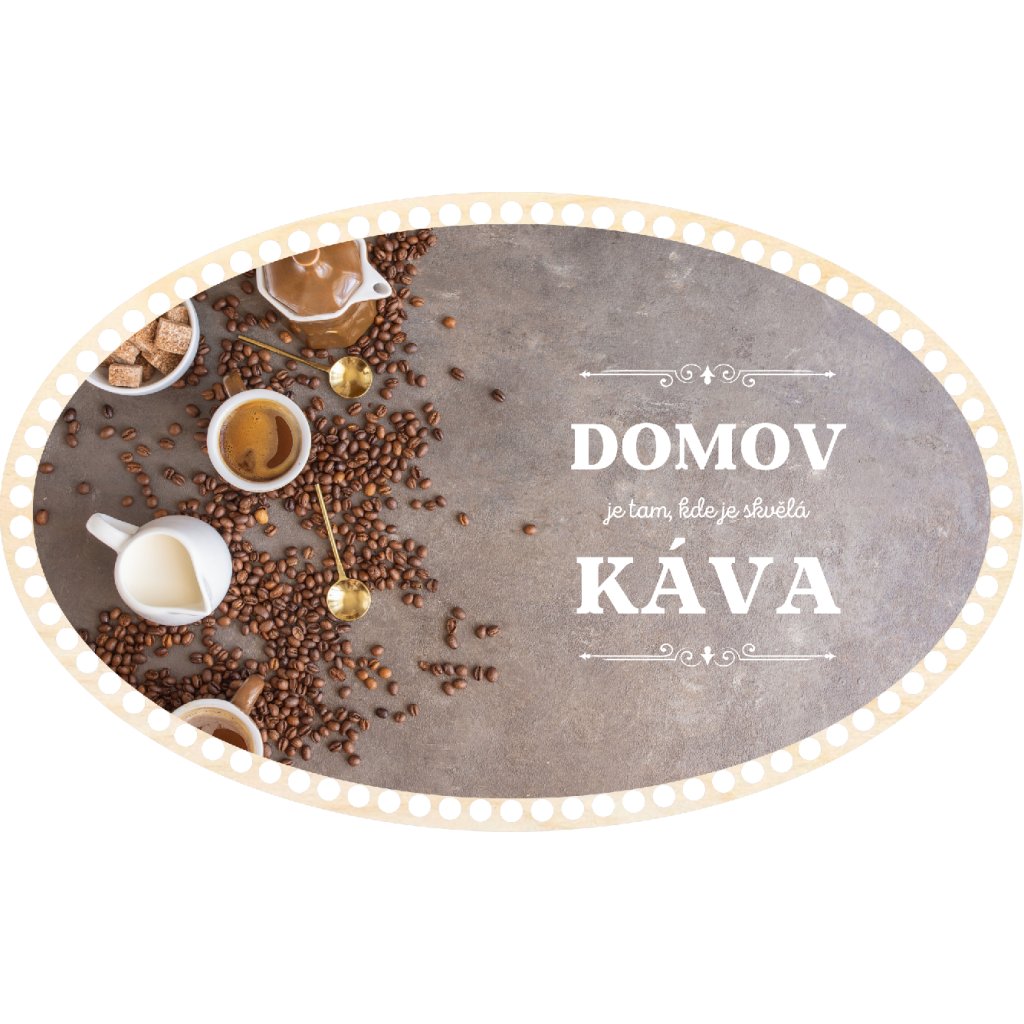 Dno/víko - ovál 40x25 cm, domov je tam, kde je skvělá káva