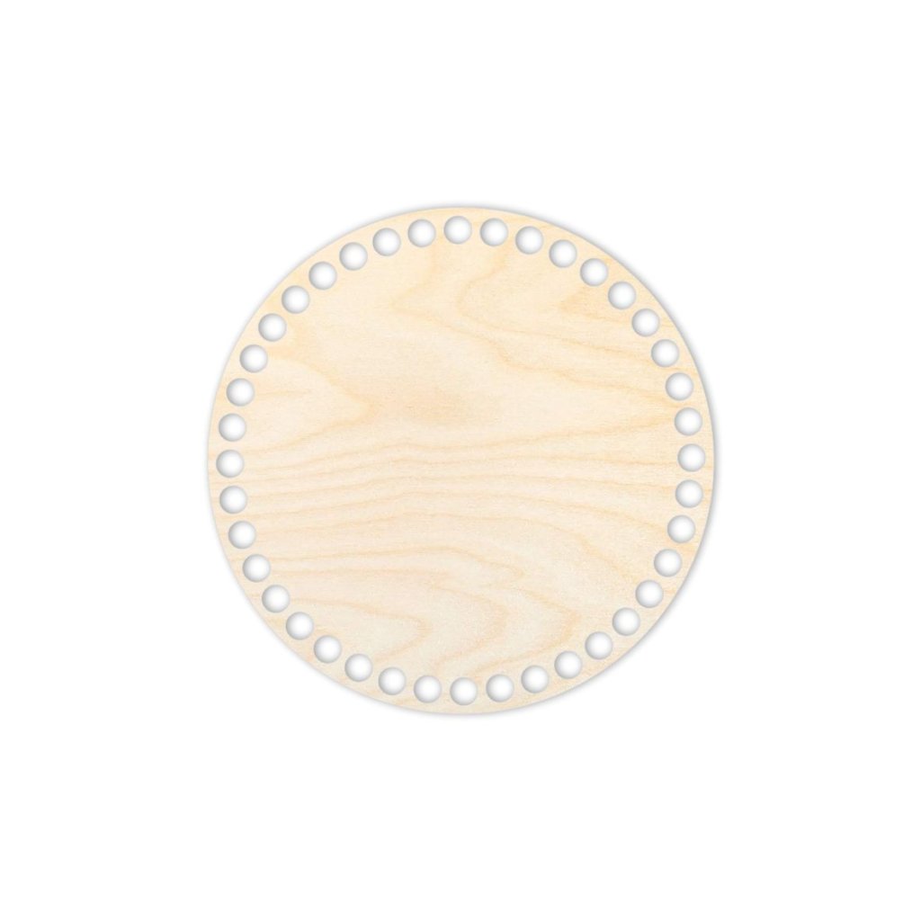 Kulaté dřevěné dno průměru 25 cm, vyrobené z březové překližky o síle 3 mm, které je vhodné pro výrobu háčkovaných košíků ze špagátových nebo šňůrkových přízí tloušťky 9 mm, tzv. JUMBO příze. Vyrobený košík lze použít jako dekoraci nebo úložný prostor.