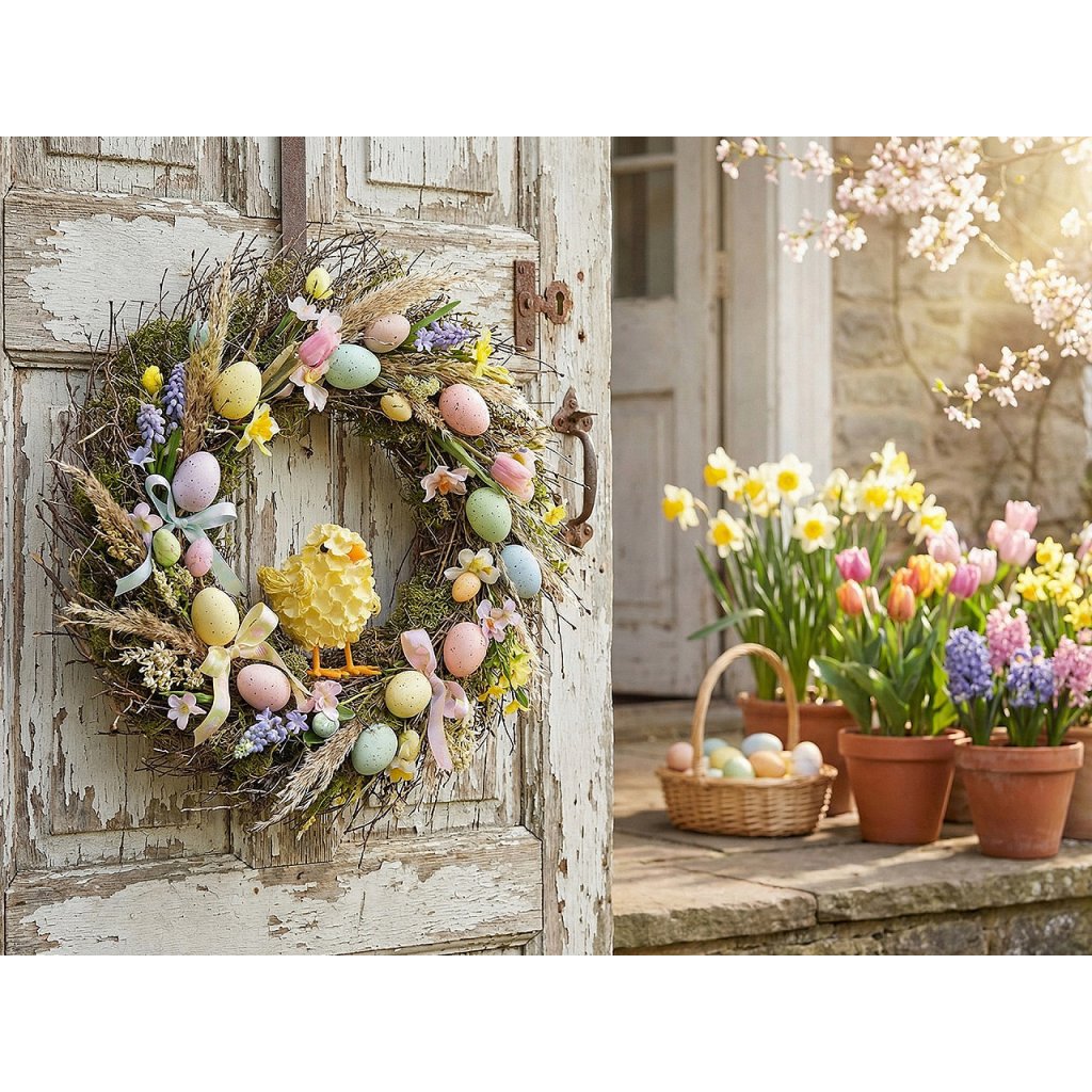 Velkou drátěnou konstrukci na věnec můžete libovolně dozdobit. Slouží pro vytvoření různých druhů věnců a dekorací na zavěšení i položení. Práce s touto konstrukcí je jednoduchá, můžete pracovat s různými látkami nebo přírodními materiály. Hodí se na výrobu jutových věnců, věnců z organzy, ale i věnečků z obilí nebo levandule. Drátěná konstrukce je výhodná na provlékání a řasení širokých stuh, výborně se k ní přivazují mašle, provázky i drátky.