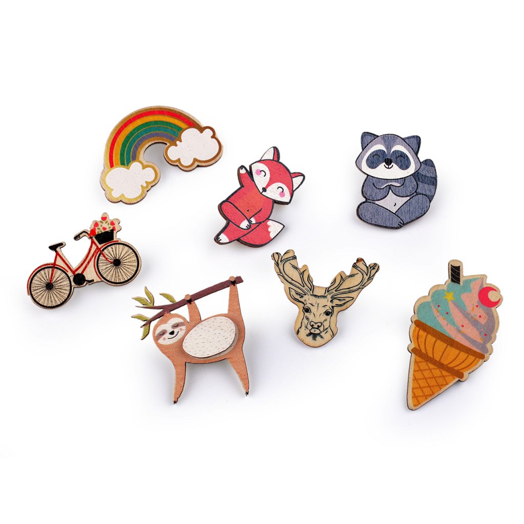 Dřevěná brož s motivy zvířátek osloví všechny příznivce drobných doplňků. Bude skvělou ozdobou halenek, košil, riflových bund, kabátů, čepic, tašek či batohů.