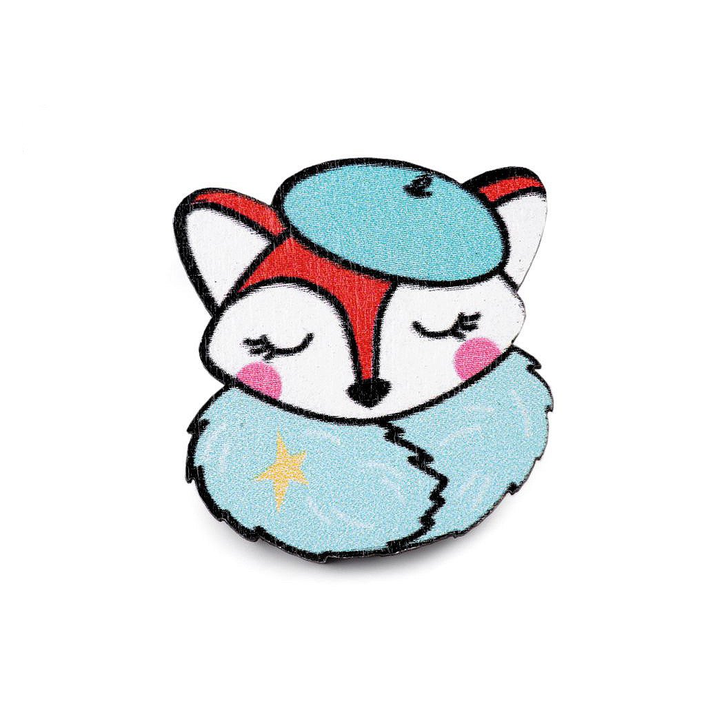 Dřevěná brož liška, pes, lenochod, mýval, jednorožec
