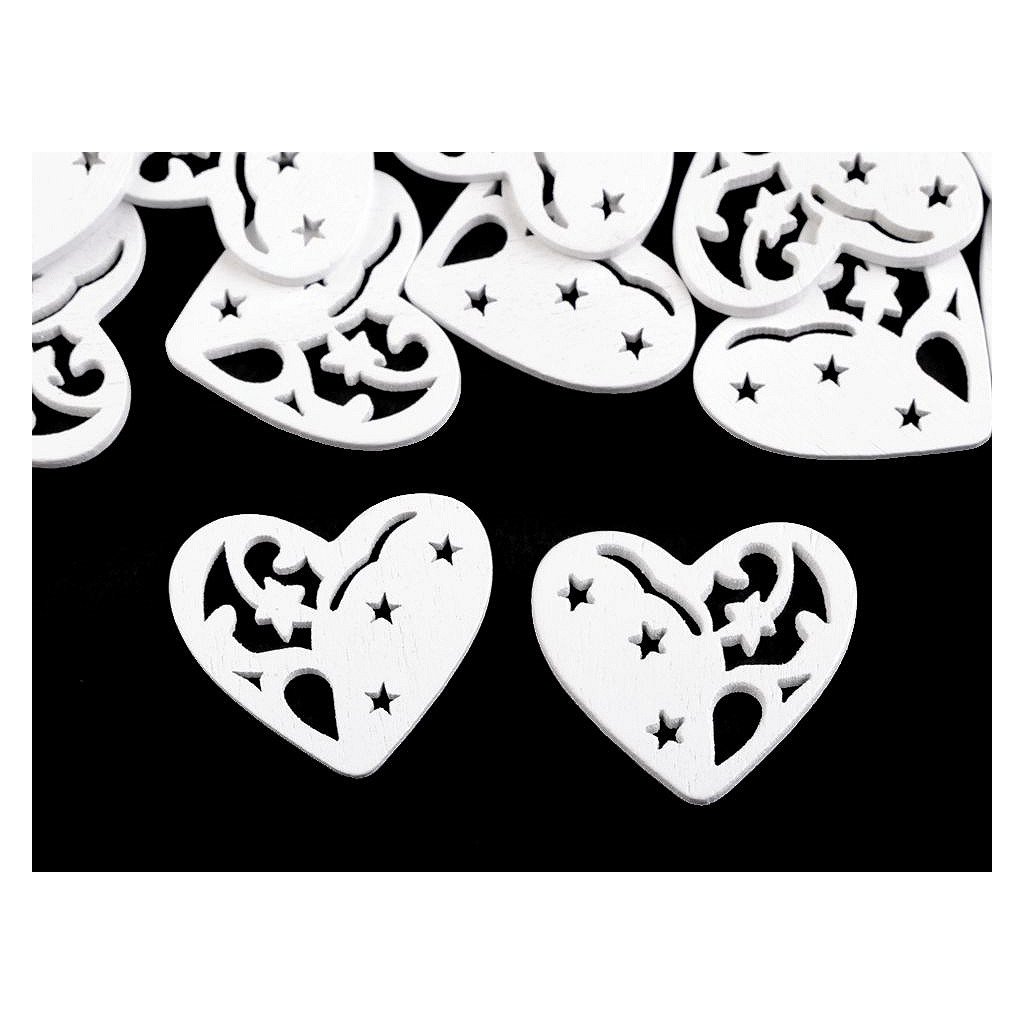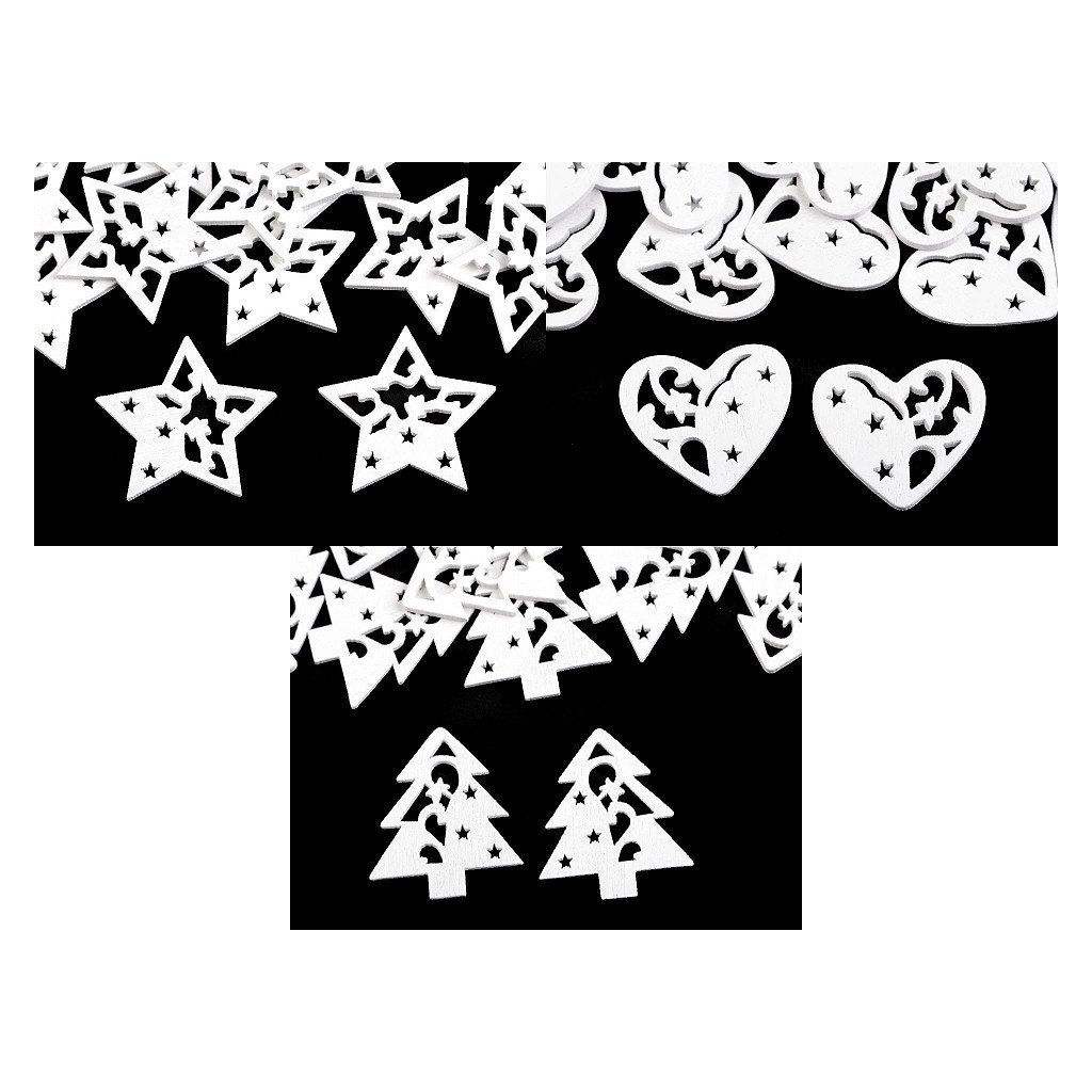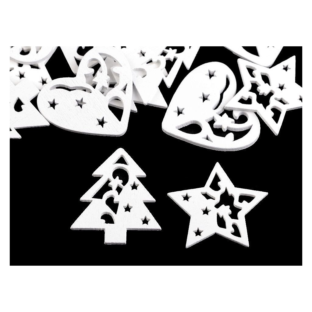 Dřevěné dekorace ve tvaru stromku, hvězdy a srdce využijete k aranžování svátečního stolu nebo k ozdobení věnců či dárků. Mají v sobě efektní výřezy.