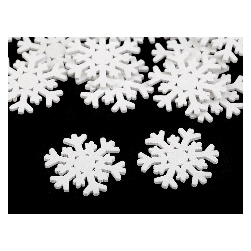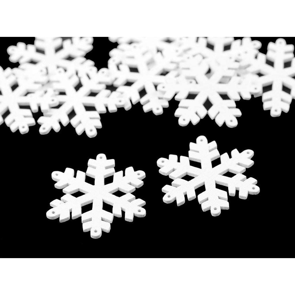Dřevěné vločky jsou působivou zimní dekorací. Jejich povrch je lakovaný.