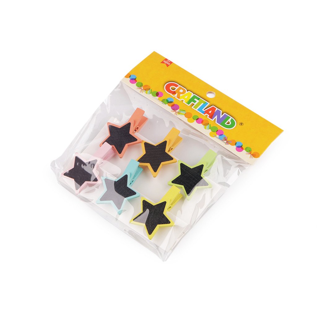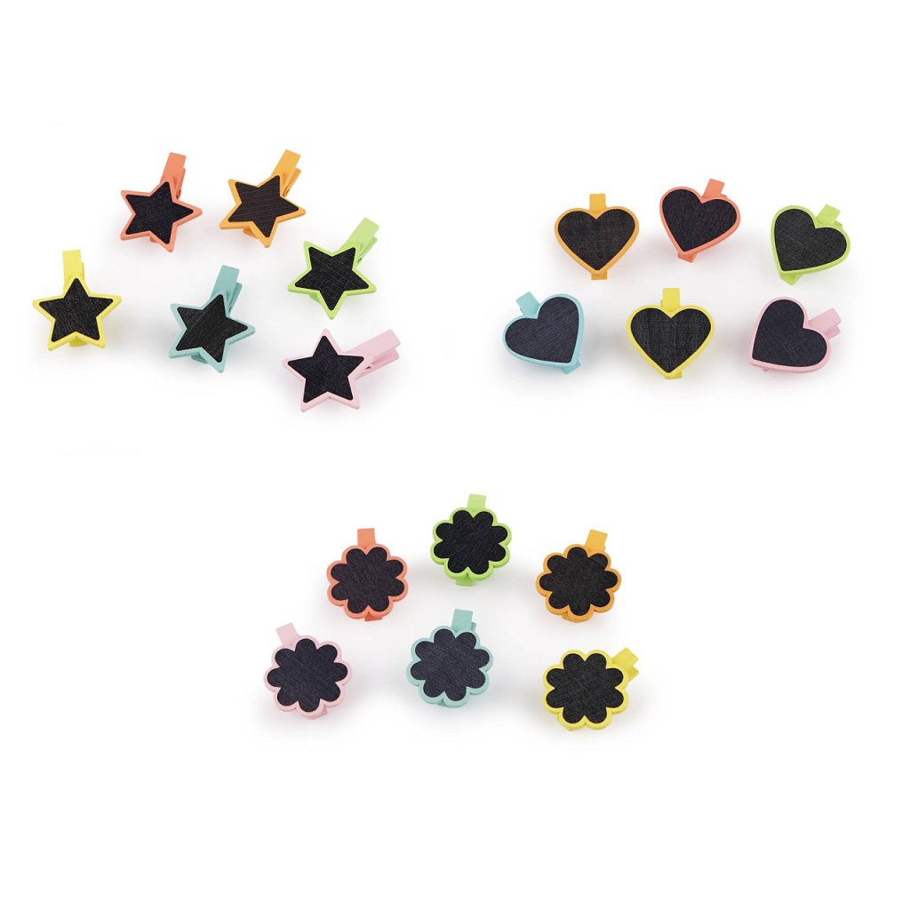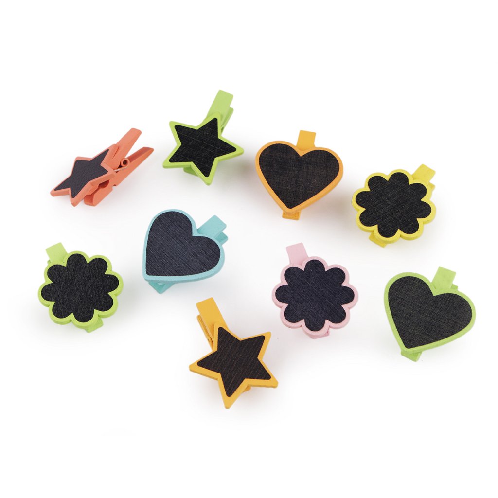 Dřevěné kolíčky s tabulkou - hvězda, srdce, květ