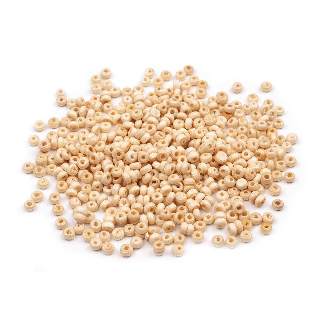 Drobné dřevěné korálky ve tvaru disku. Můžete je použít i tam, kde byste použili rokajl, pokud dáváte přednost přírodním tónům a dřevěnému materiálu.
