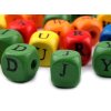 Barevné kostky s potiskem písmenek stačí navléci na pruženku, kloboukovou gumičku nebo paměťový drát a veselý náramek se jménem je během chvilky na světě. Nebo použijte na návlek voskovanou šňůrku, kterou můžete zdobit i uzlíky a sami budete nadšeni z originálního náhrdelníku, který vám vznikne. Fantazii se meze nekladou.