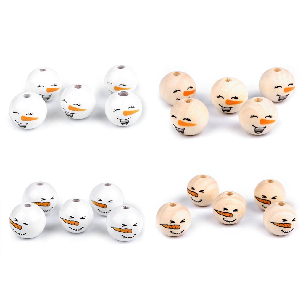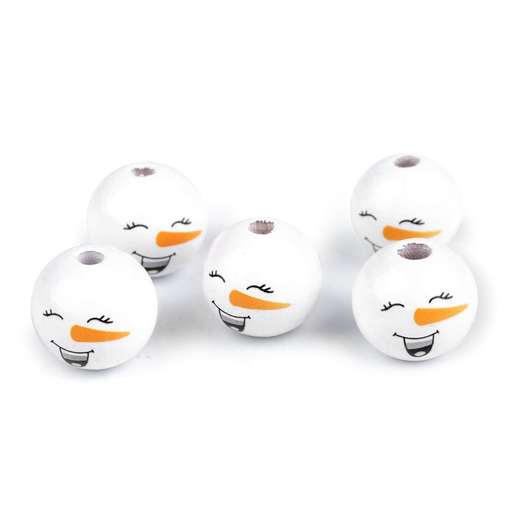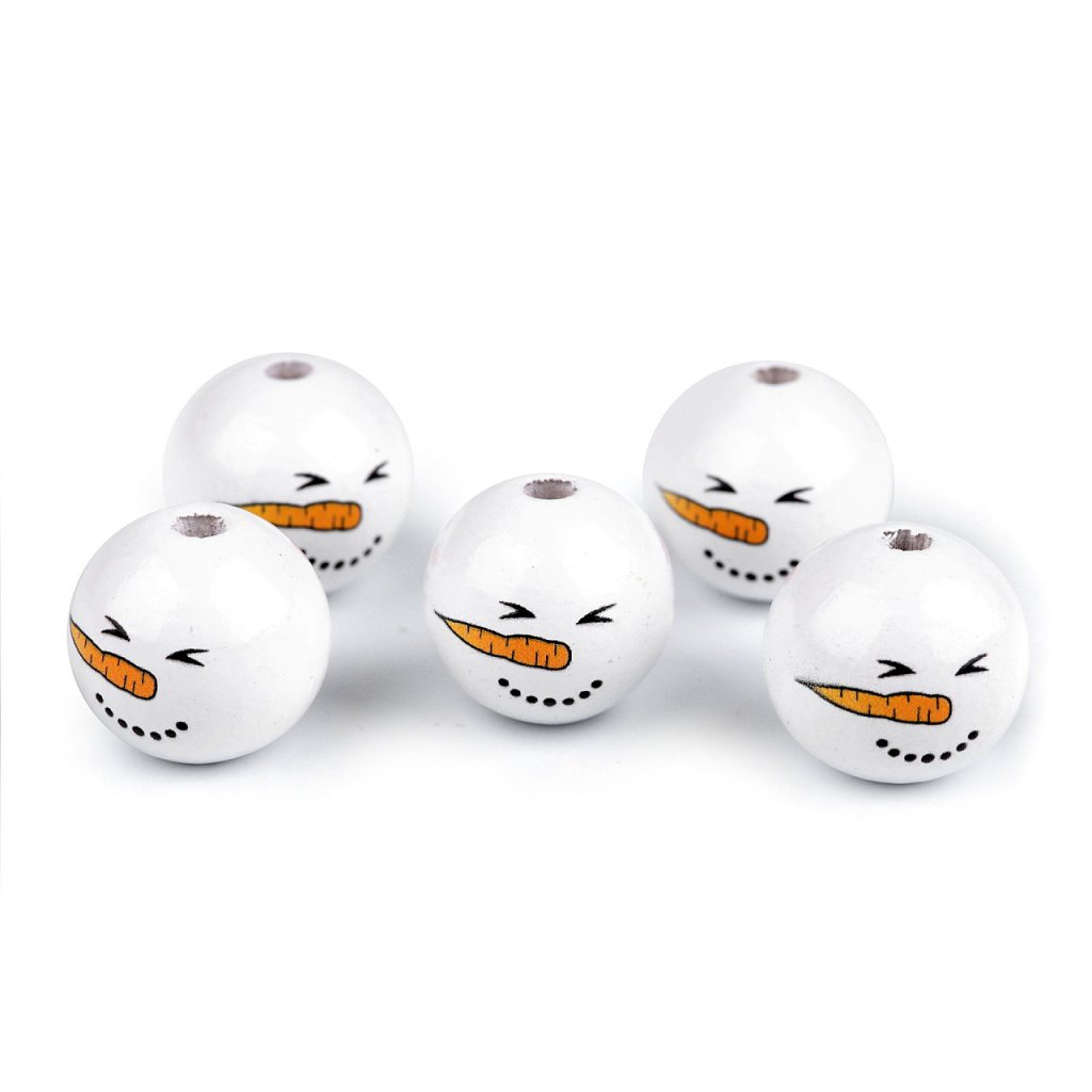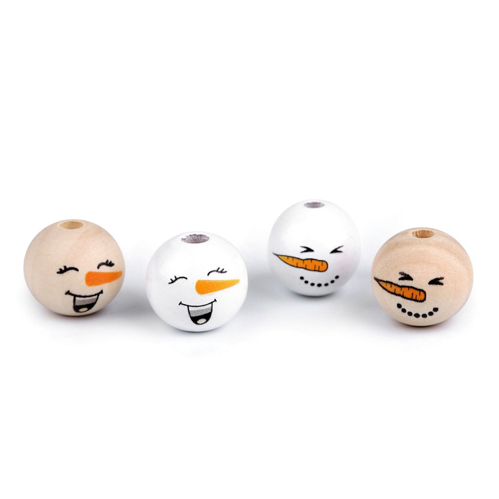 Dřevěné korálky s obličejem sněhulák Ø20 mm