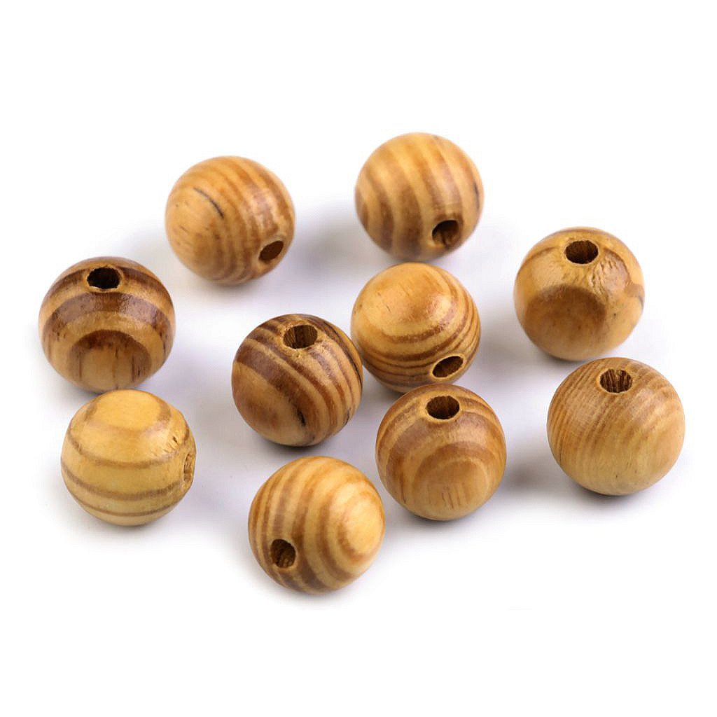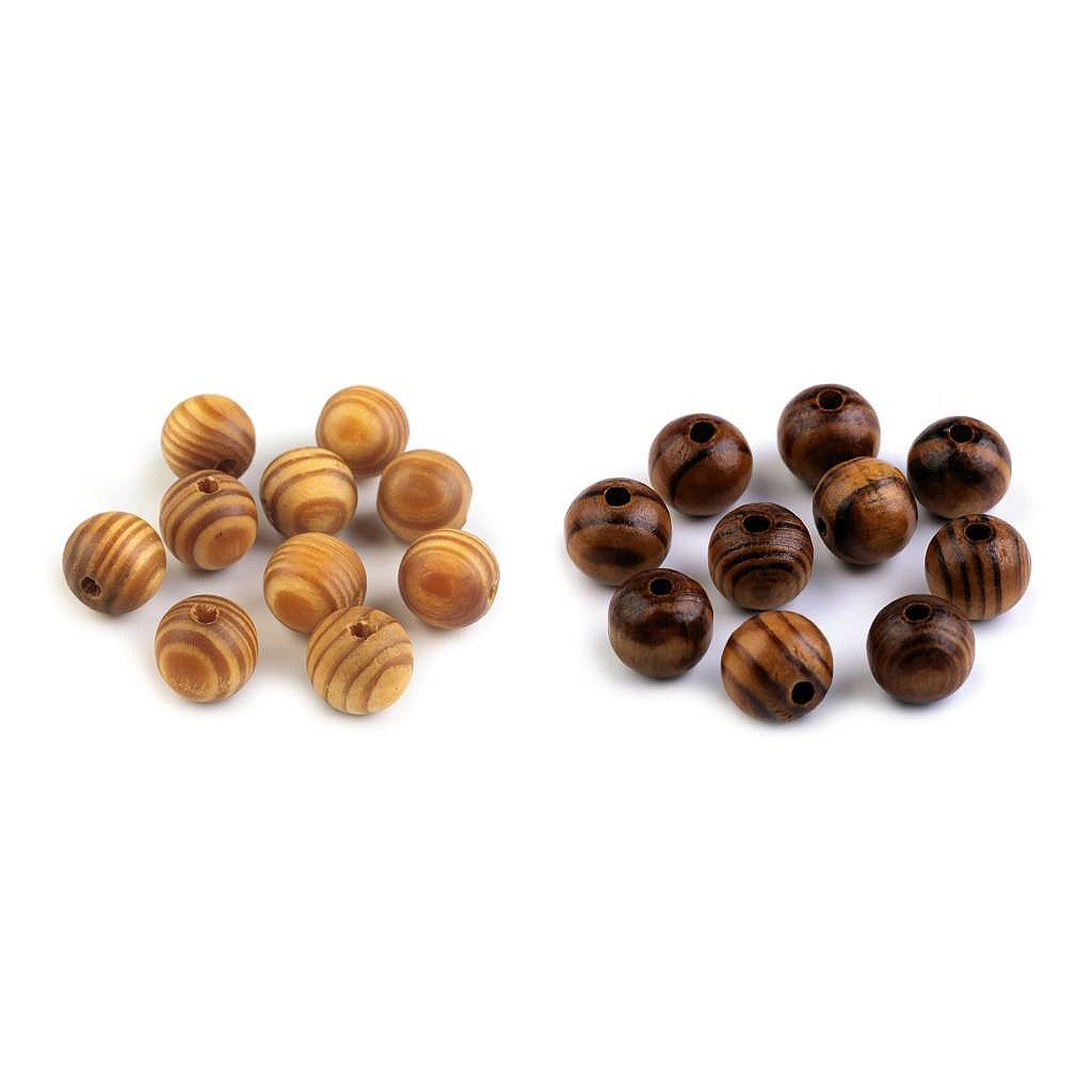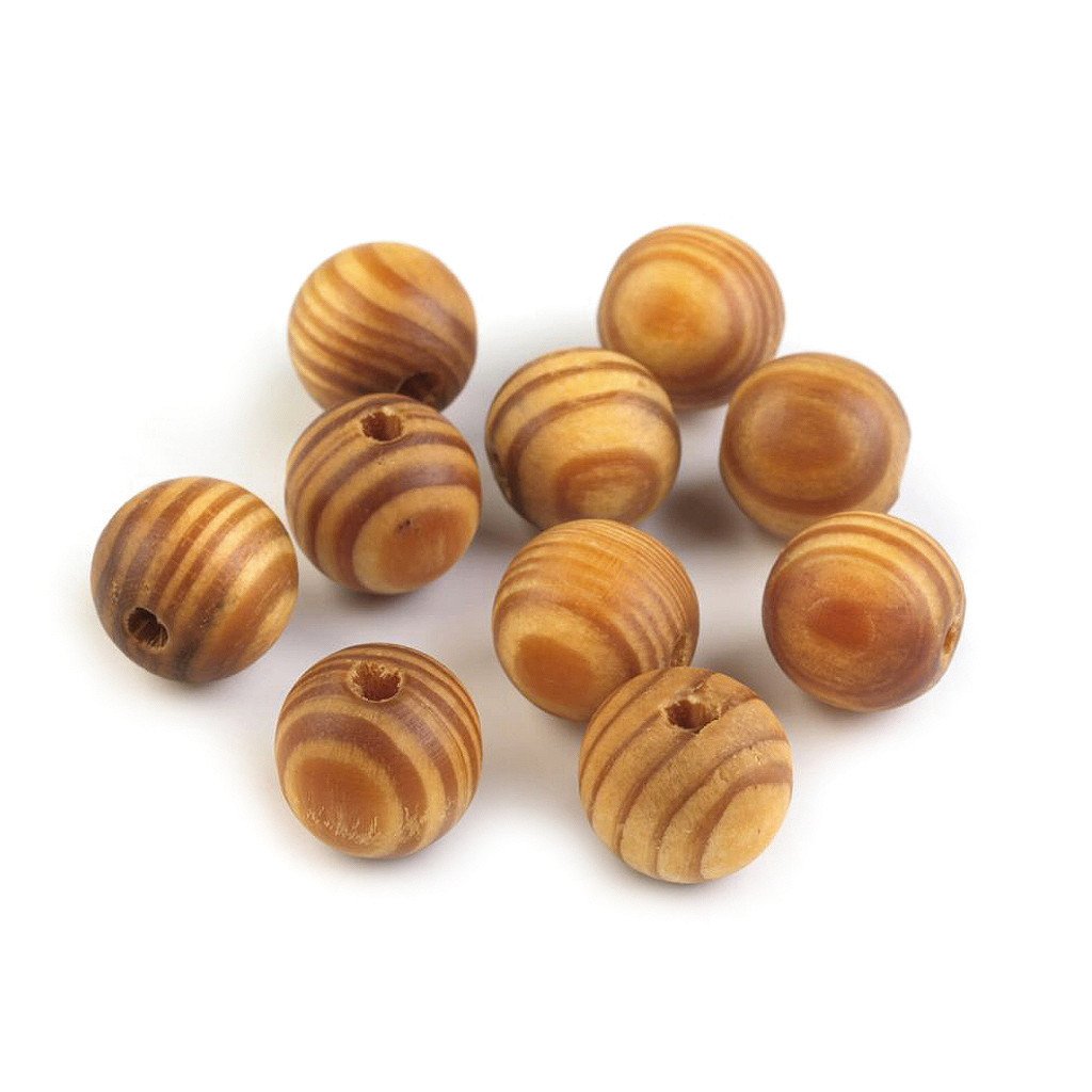 Dřevěné korálky s výraznou kresbou dřeva jsou lakované. Jsou vyrobené z borovice.