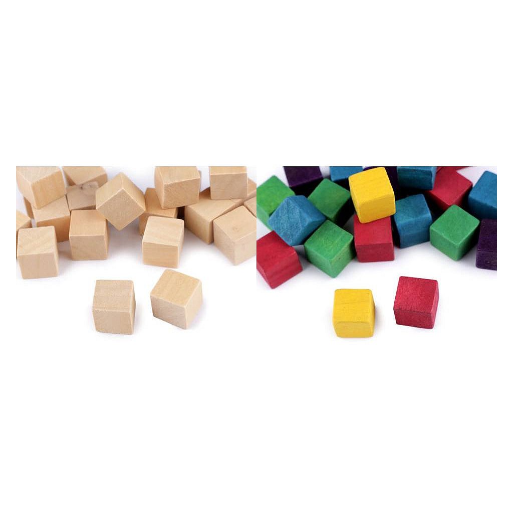 Malé dřevěné kostky ke kreativnímu tvoření.