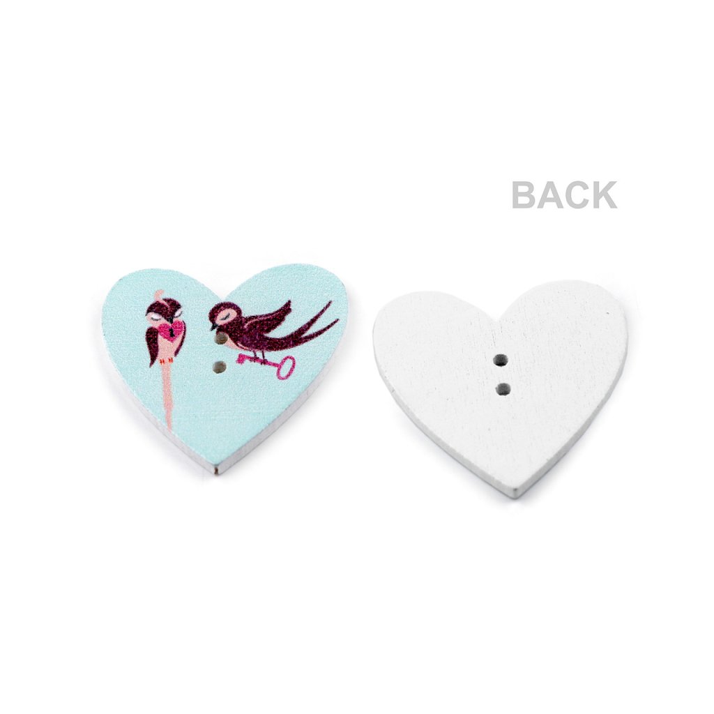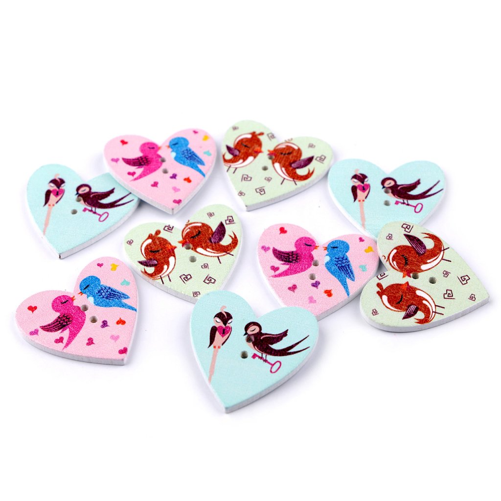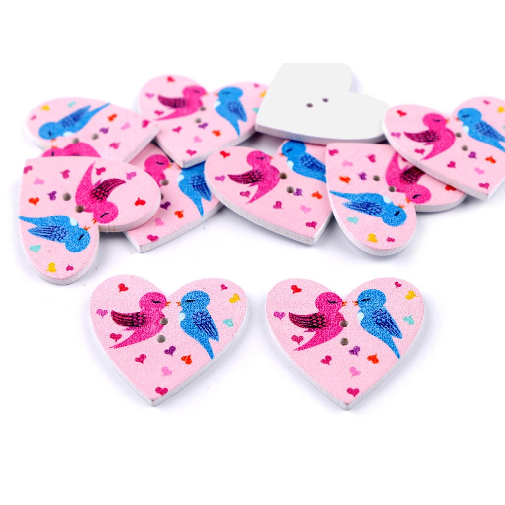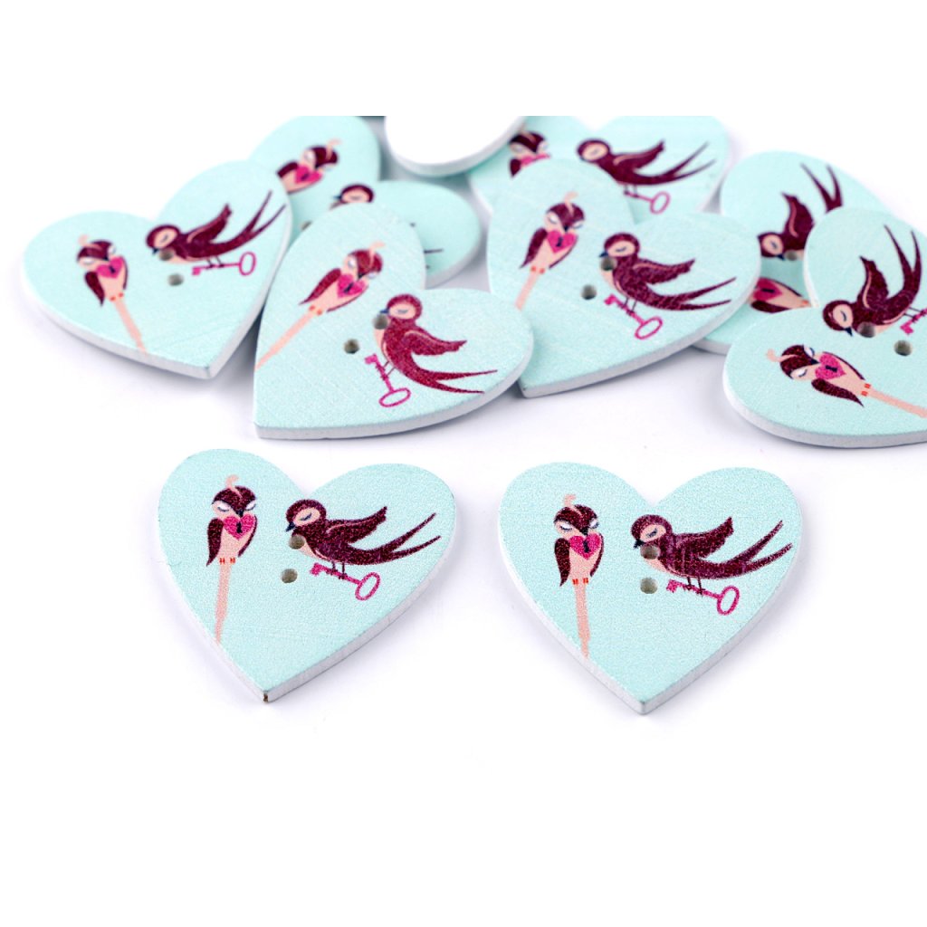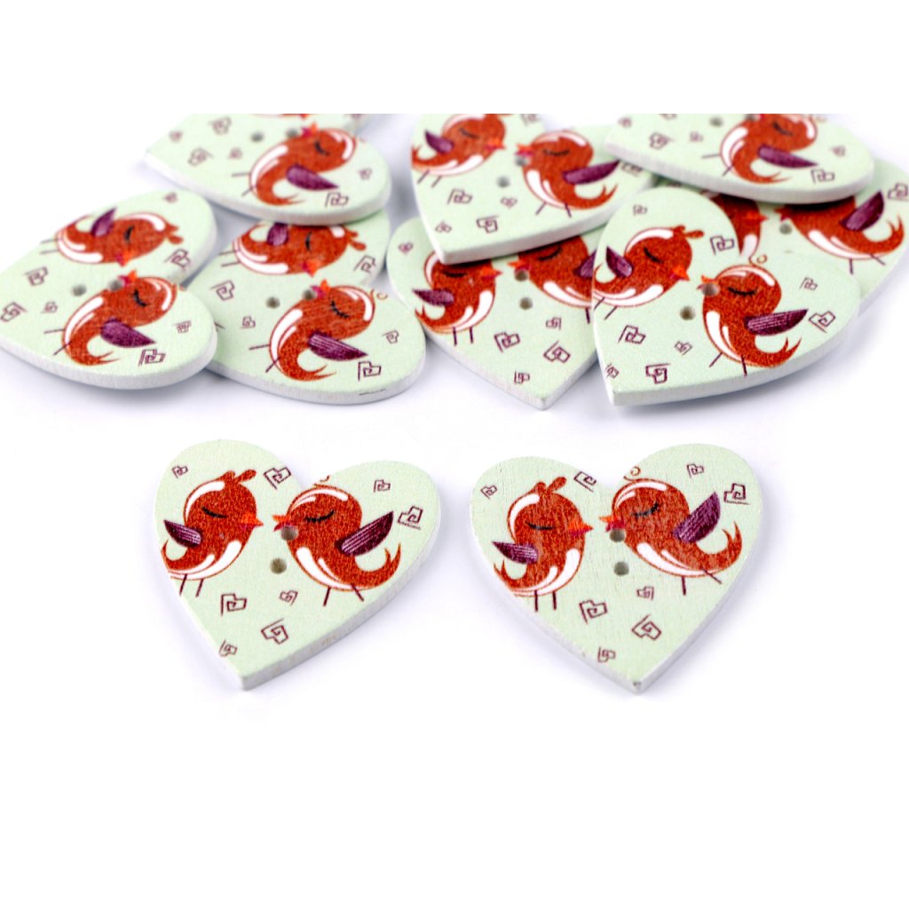 Dřevěné dekorační knoflíky s párem ptáčků jsou vhodné ke zdobení alb, přáníček, krabiček, rámečků, květináčů, k balení dárků i k netradičnímu svatebnímu aranžování.