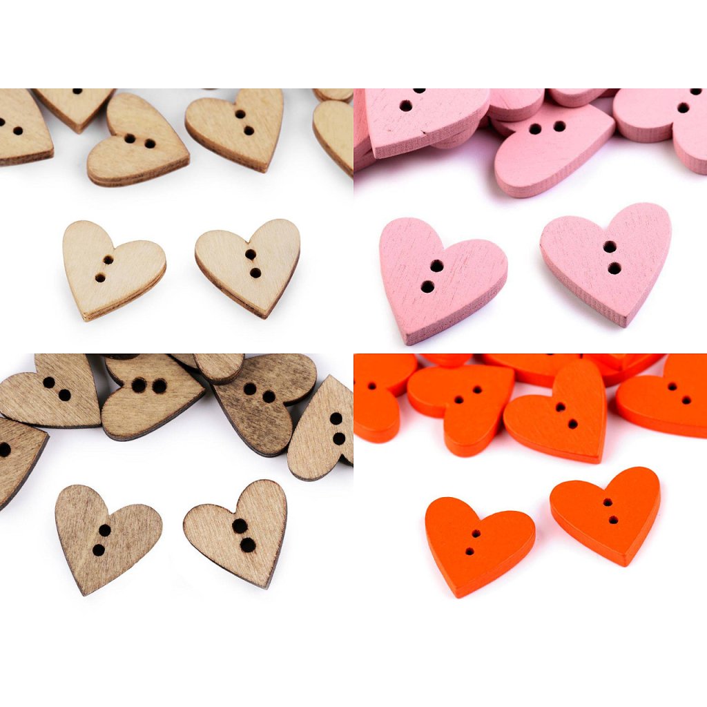 Dřevěné knoflíky ve tvaru srdce využijete ve scrapbookingu na ozdobení rámečků, přáníček, jmenovek, pozvánek, deníků apod. Můžete je použít i do květinových vazeb, které zajímavě oživí.