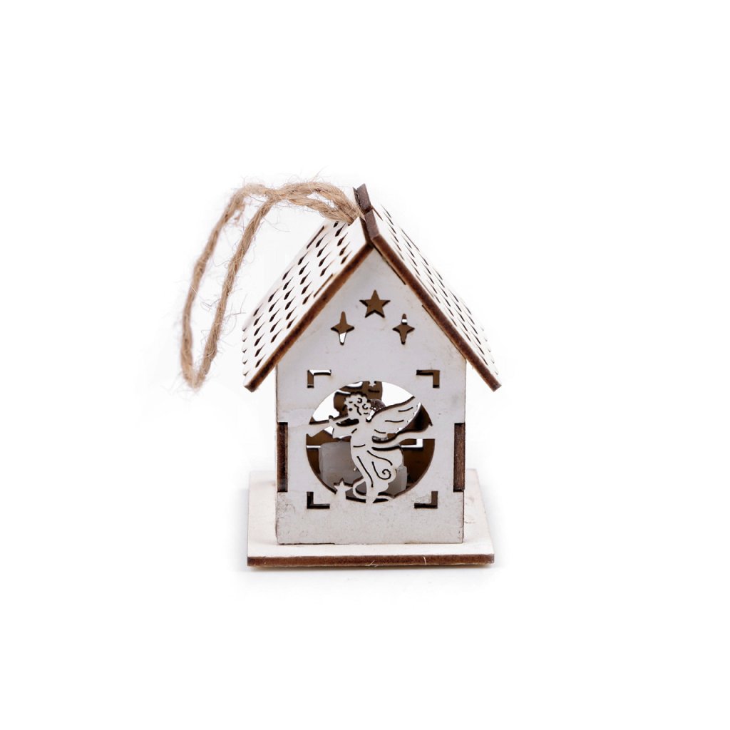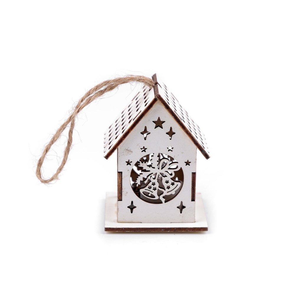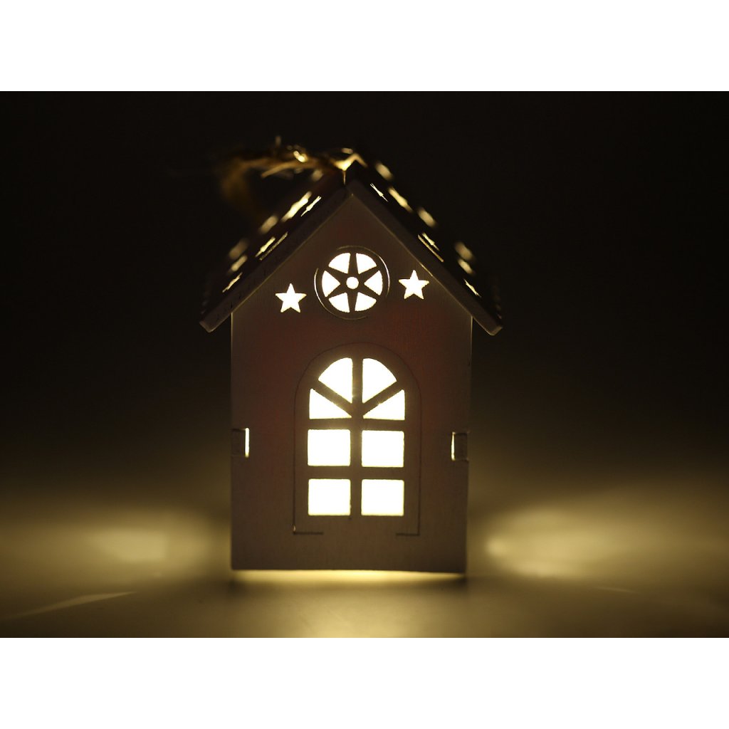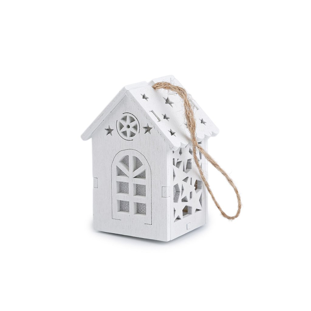 Svítící dřevěný domeček s precizně zpracovanými výřezy můžete díky poutku pověsit na stromeček nebo dekorační věnce. Vynikne také jako ozdoba svátečního stolu. Svítí příjemným teplým světlem.
