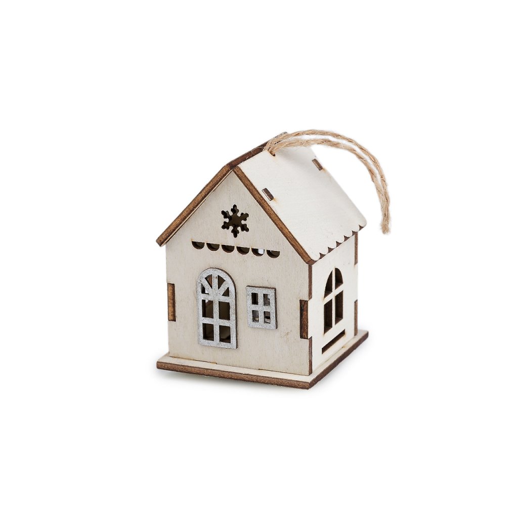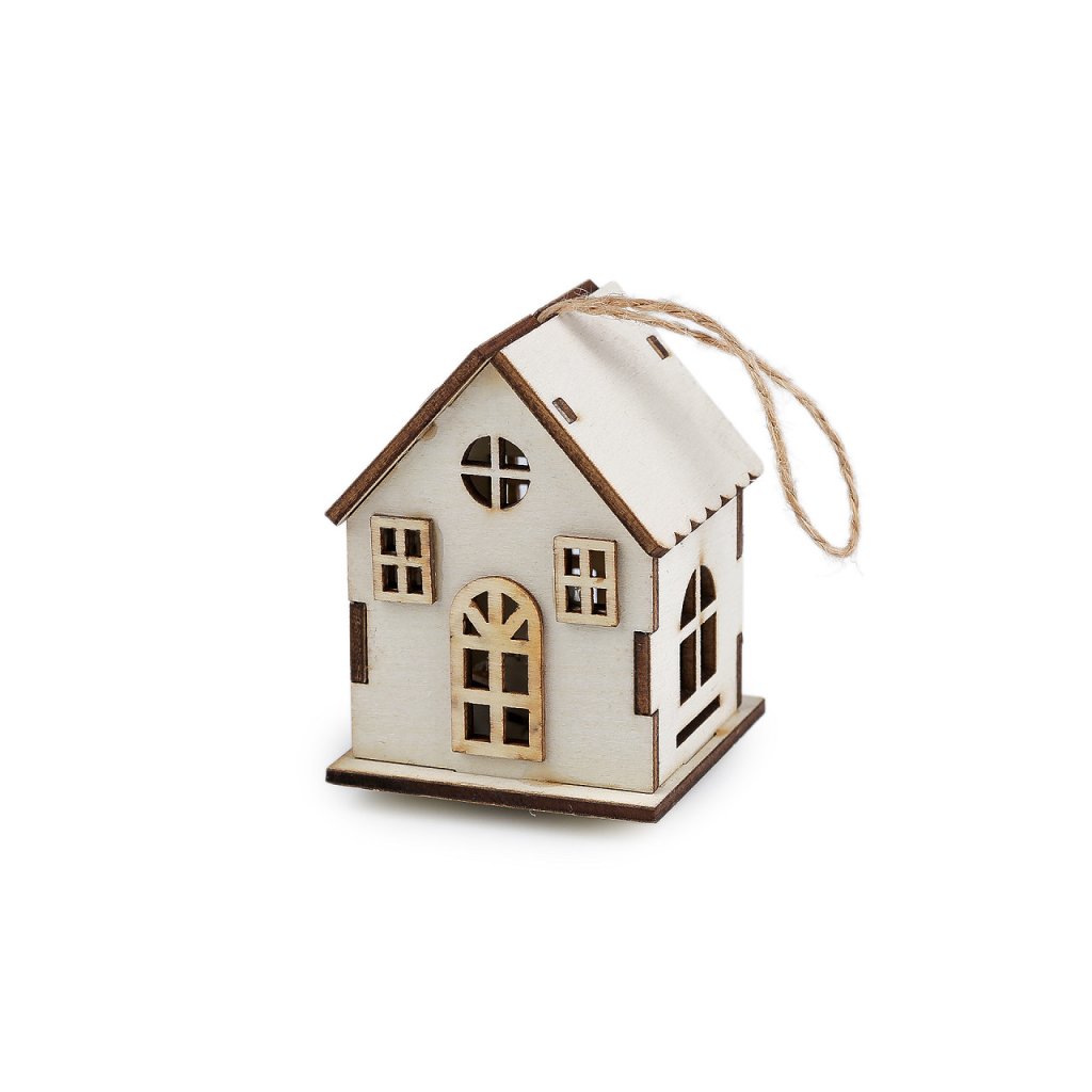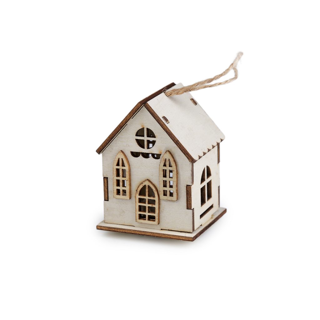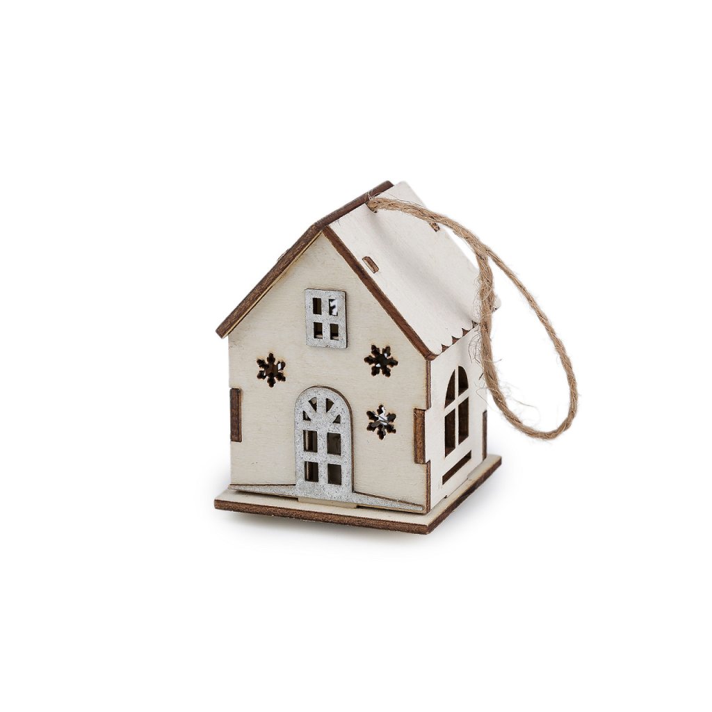 Dřevěný svítící domeček má poutavě zpracované výřezy. Teplé světlo vytváří příjemnou atmosféru, která zútulní každý interiér. Za jutové poutko ho můžete pověsit na stromeček, věnce apod.
