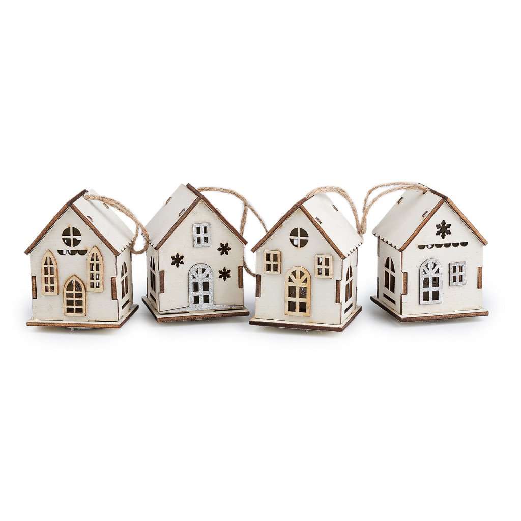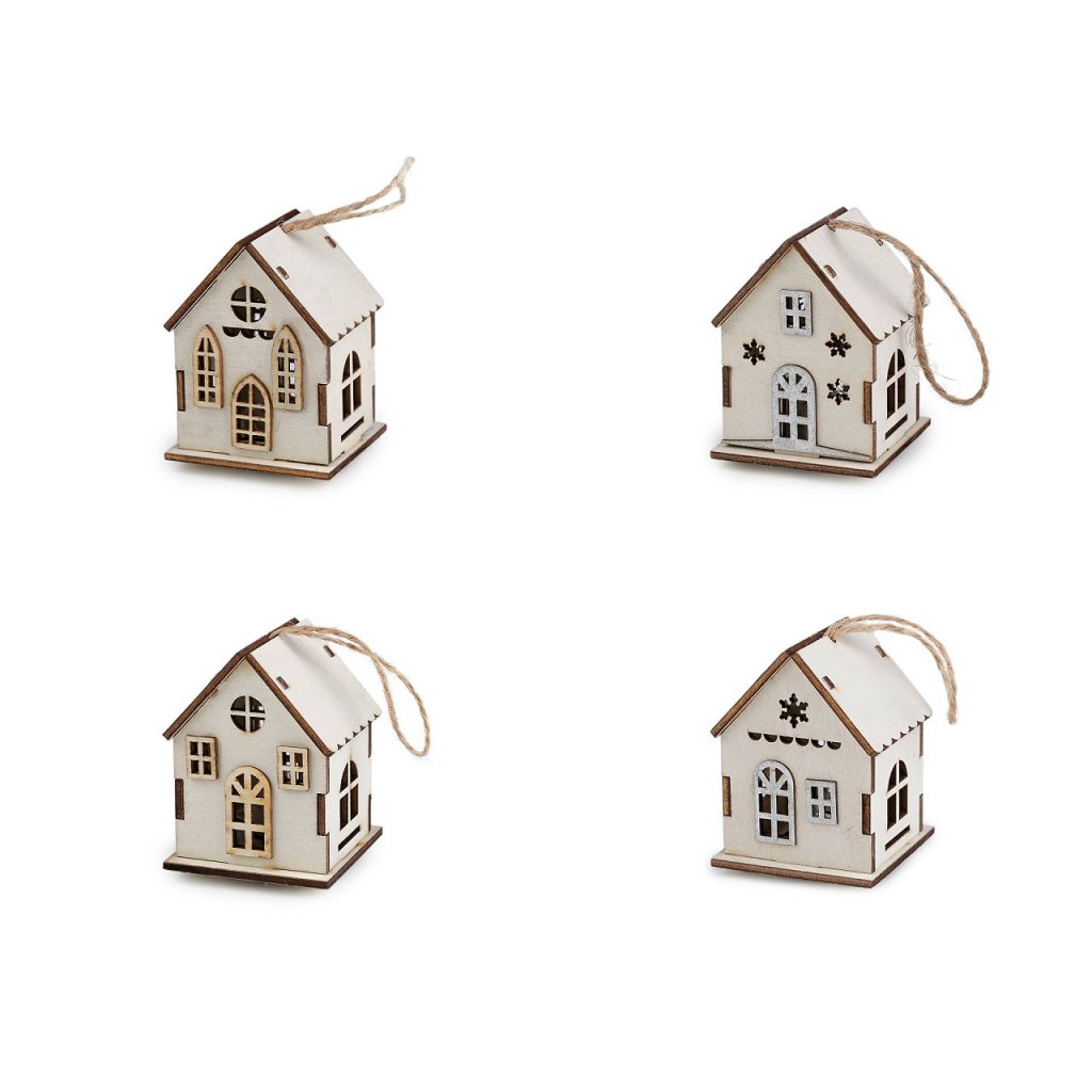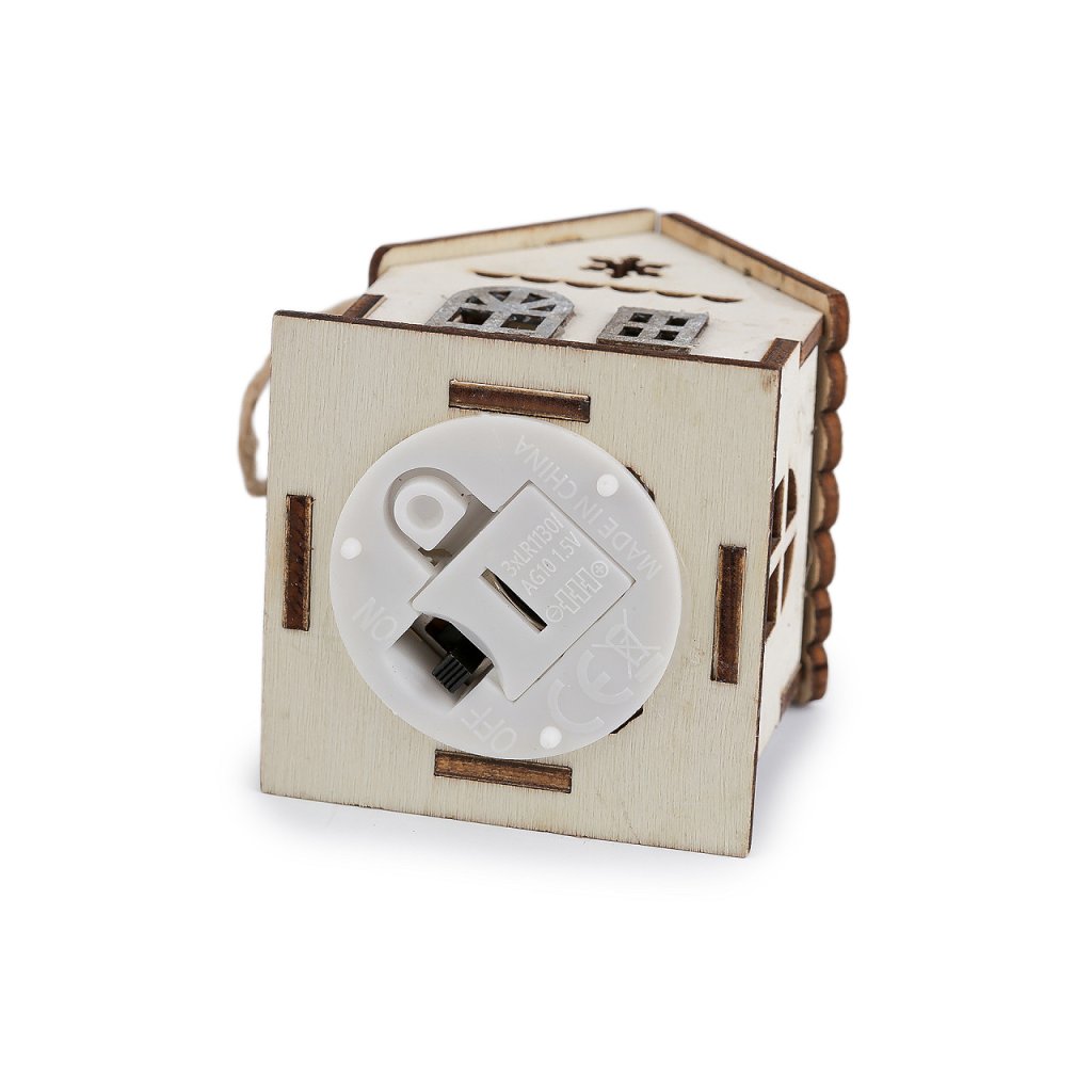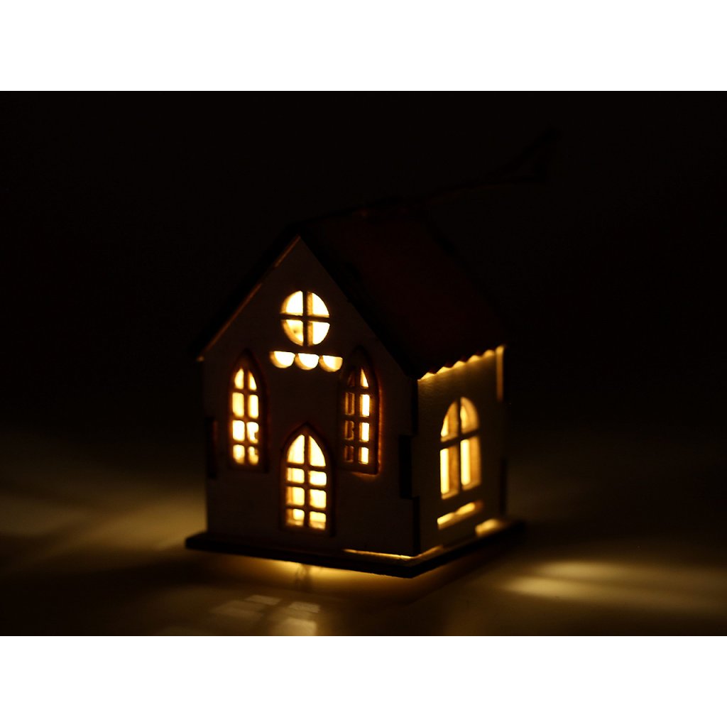 Dřevěný svítící domeček má poutavě zpracované výřezy. Teplé světlo vytváří příjemnou atmosféru, která zútulní každý interiér. Za jutové poutko ho můžete pověsit na stromeček, věnce apod.