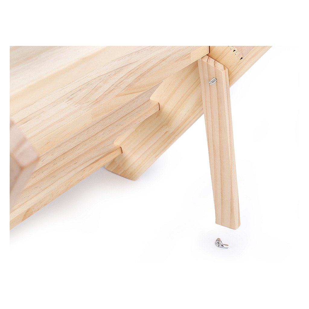 Stojan se dá snadno složit a rozložit pomocí dvou šroubů a křídlových matic. Díky tomu je oblíbený i prodejci ve stáncích.