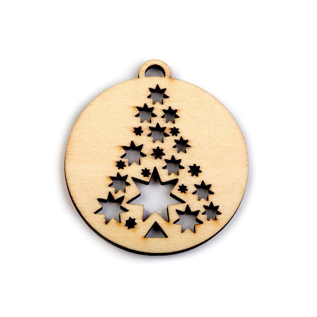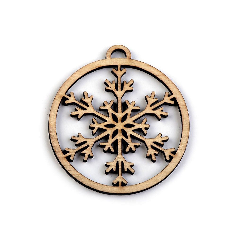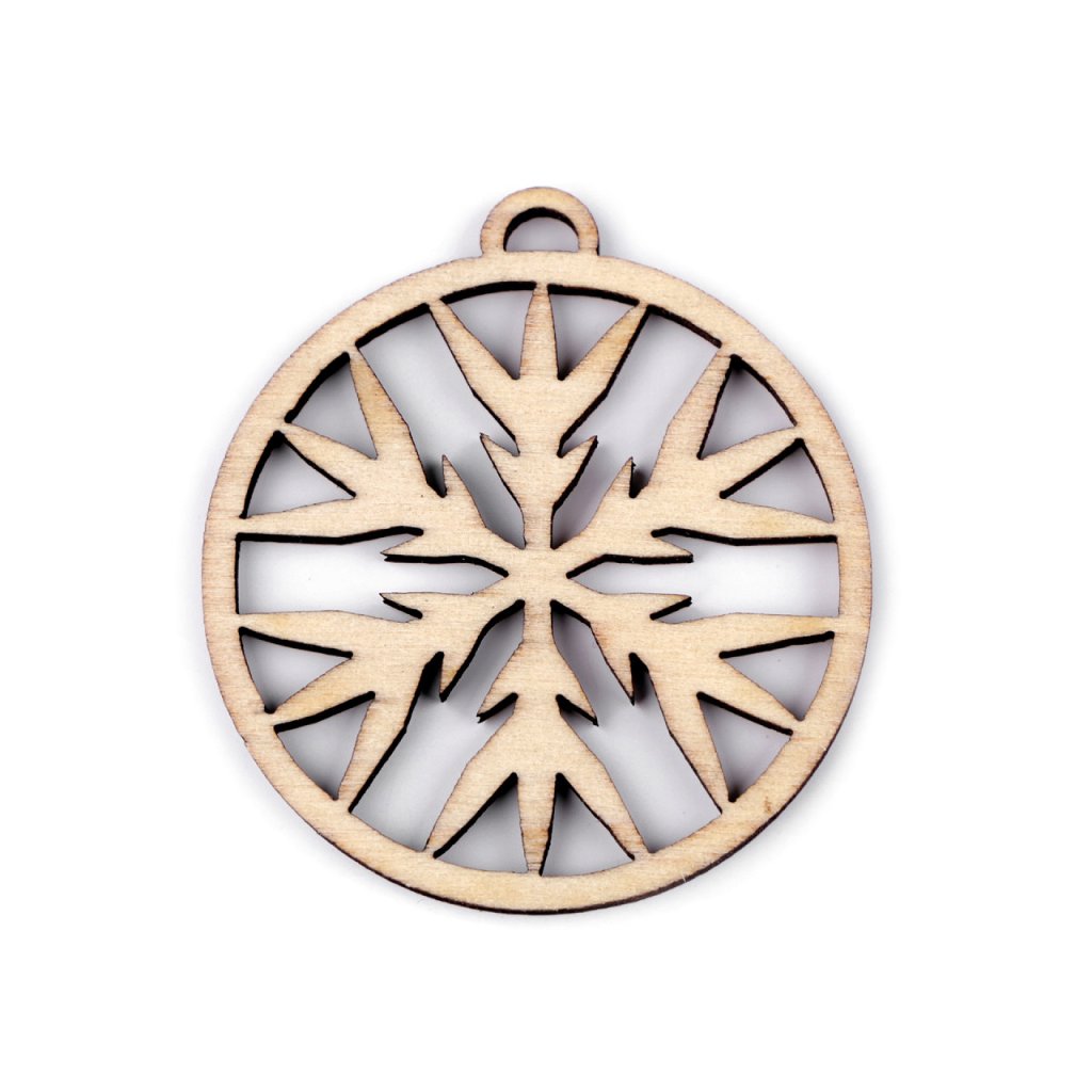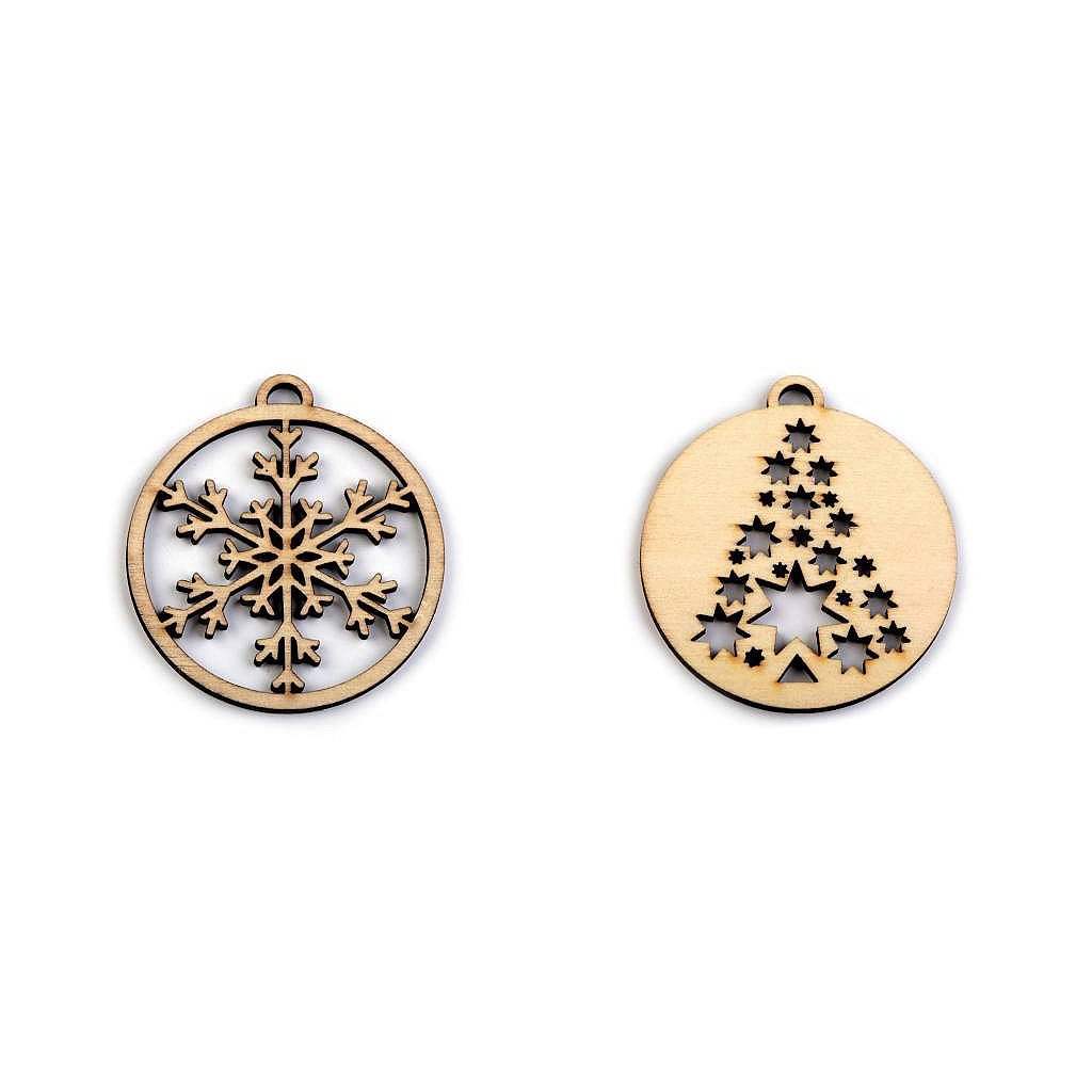 Dřevěný výřez baňka - vločka, stromeček Ø45 mm