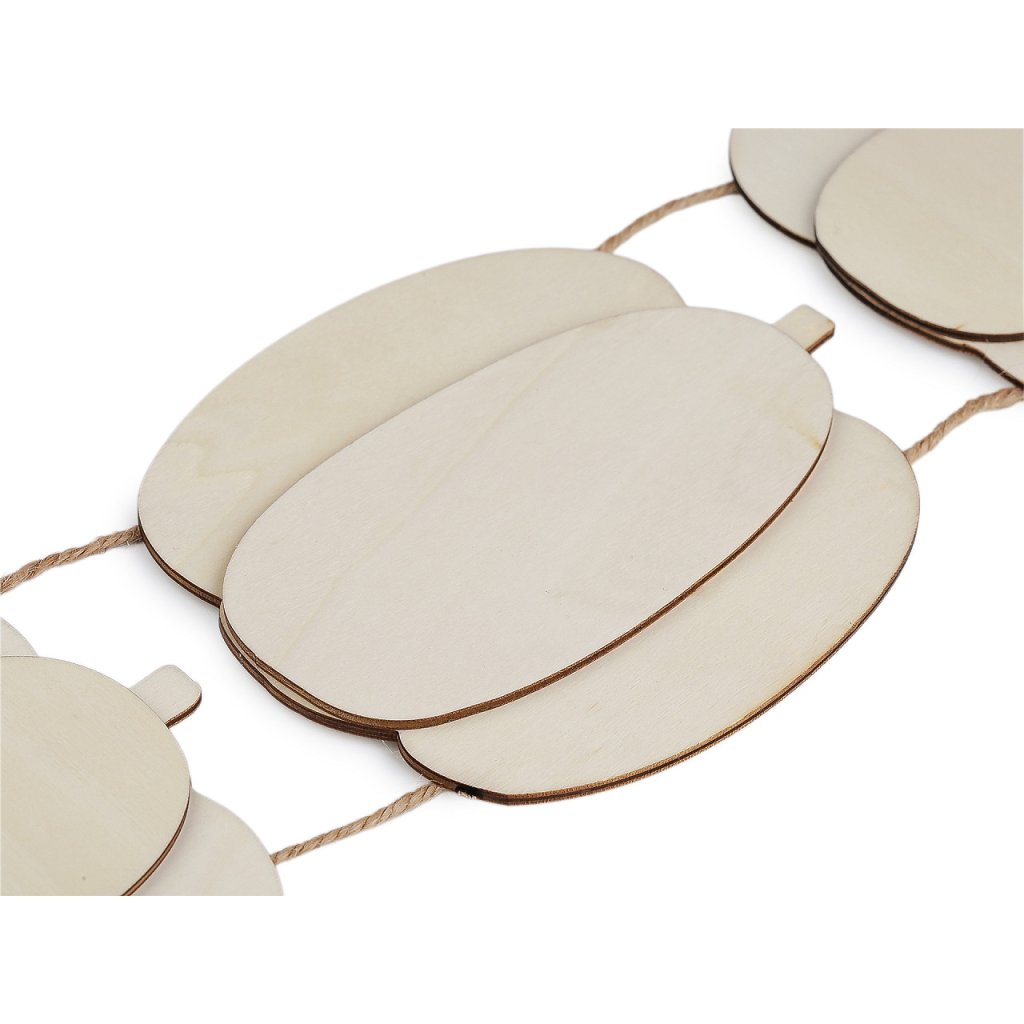 Závěs z dřevěných výřezů dýní působivě vynikne jako podzimní dekorace na zdi, dveřích i v oknech. Je vyrobený z kvalitní nelakované překližky, která je ideální pro další úpravy. Povrch je hladký, snadno jej můžete dekorovat podle vlastní fantazie. Můžete použít barvy, laky, třpytky nebo jiné dekorační techniky k vytvoření jedinečného doplňku. Díky praktickému provázku je závěs připravený k zavěšení. Je krásný i ve své přírodní podobě, skvěle se hodí na Halloween či podzimní výzdobu, ale také jako zajímavý prvek pro celoroční vystavení.