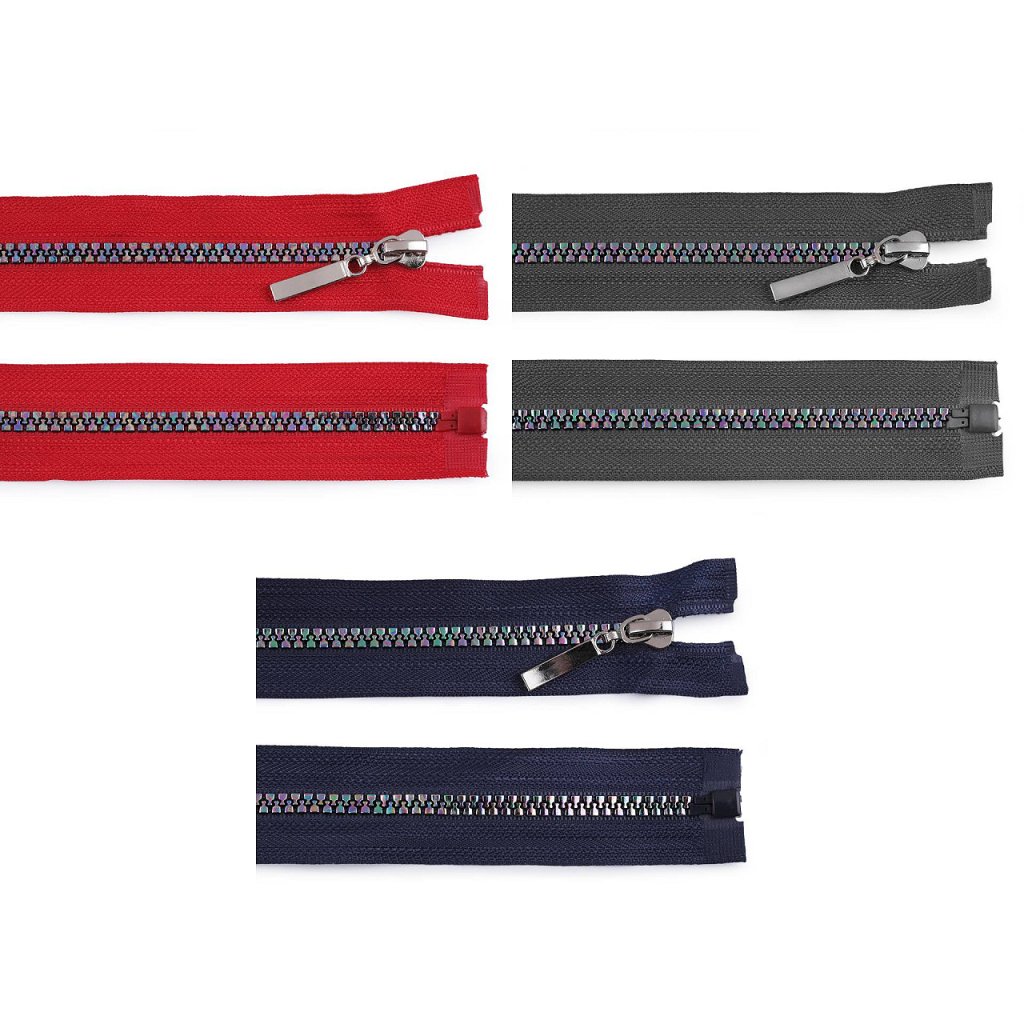 Dělitelný kostěný zip vás zaujme svým duhovým efektem, který povýší vaše oblečení na nevšední. Zip využijete na bundy, mikiny, svetry, apod.