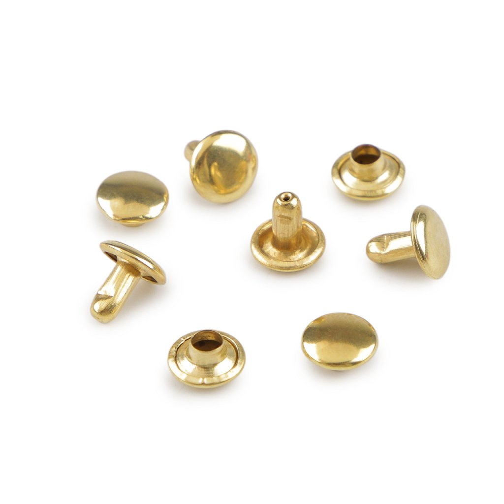 Oboustranné kovové nýty se skládají ze dvou částí. K jejich aplikaci je potřeba piston a lis, který najdete pod kódem 070241 nebo 790770.