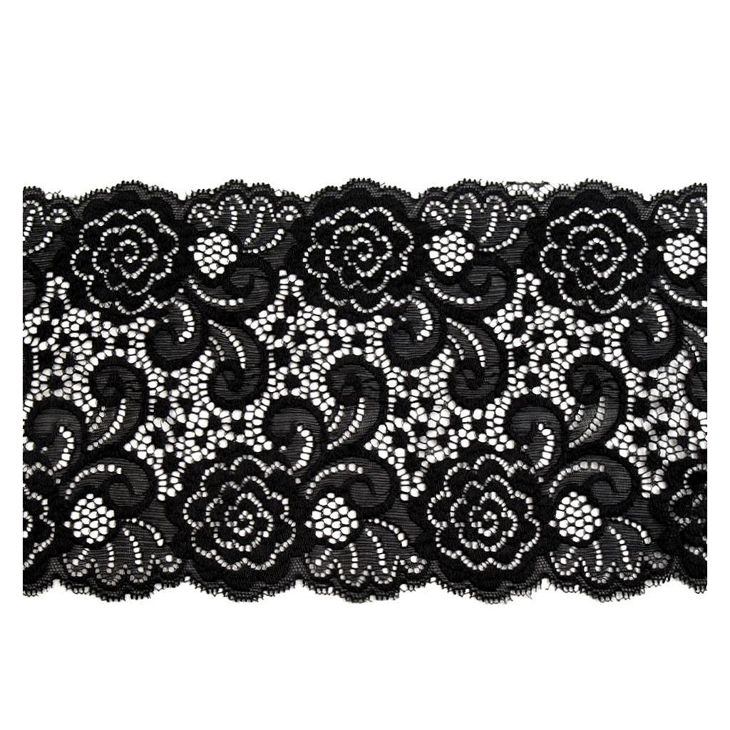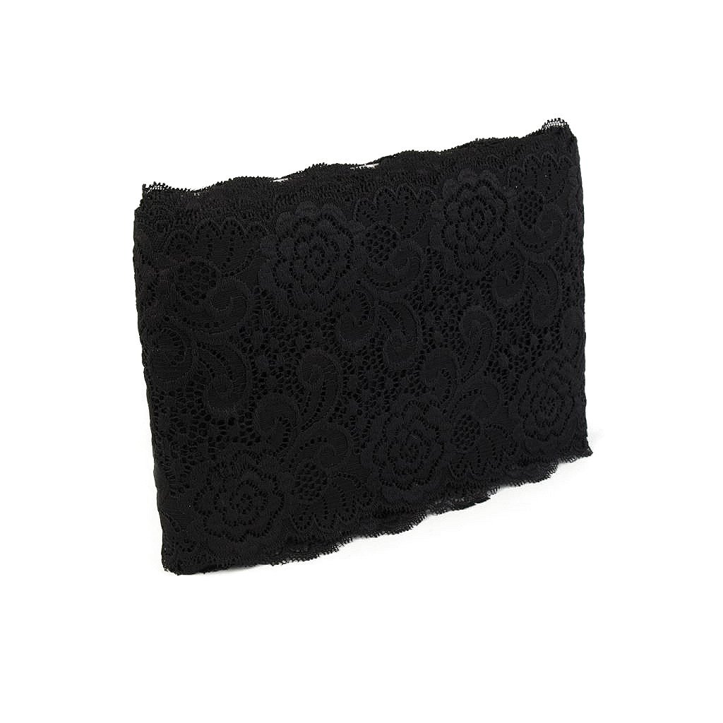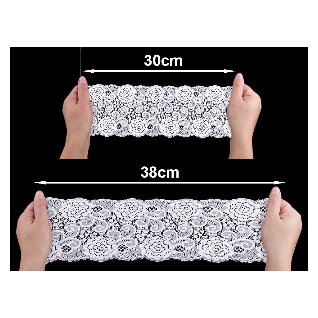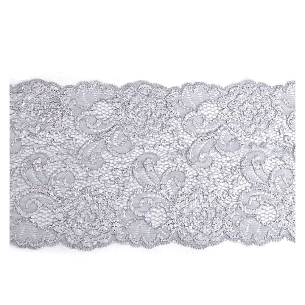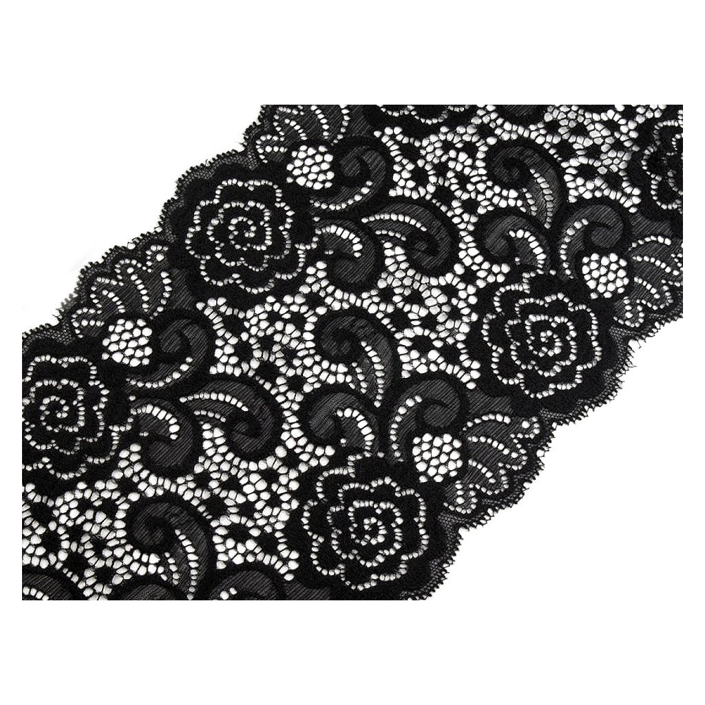Elegantní krajka je pružná. Zdobí ji jemné květinové motivy.