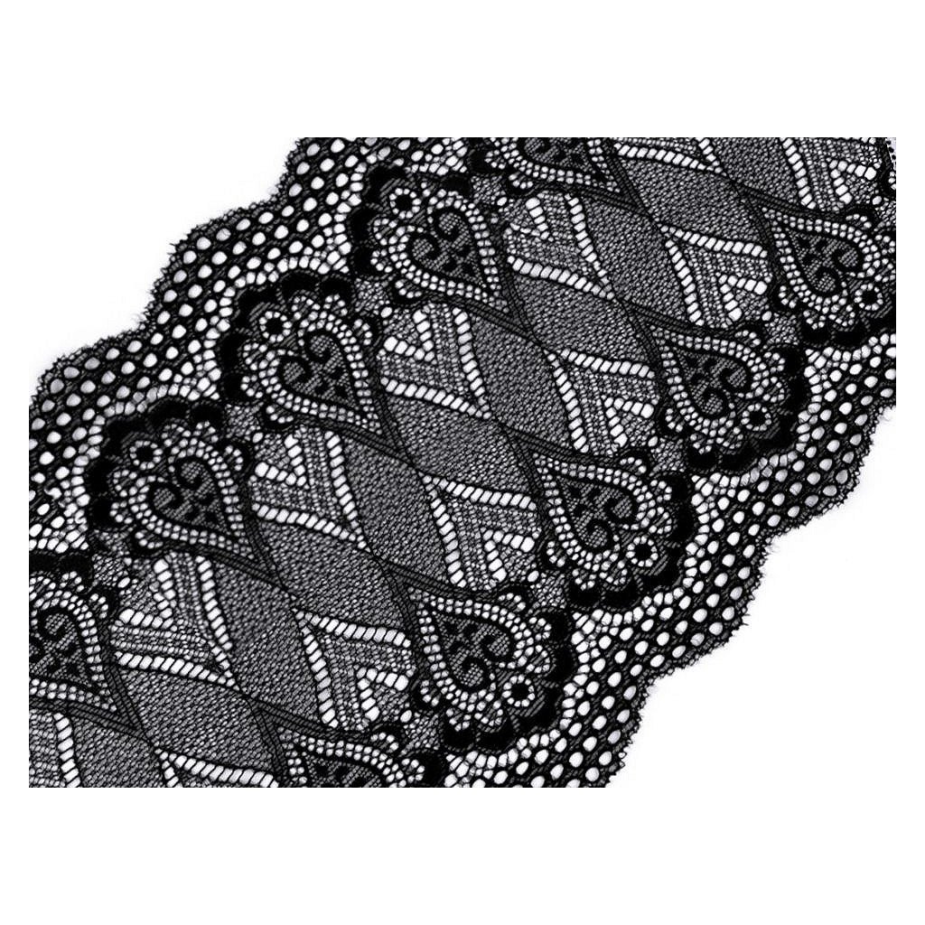 Široká elastická krajka je vhodná k ozdobení šatů, halenek, sukní nebo k výrobě bandeletek. Poslouží vám i k ozdobení středové části stolu.