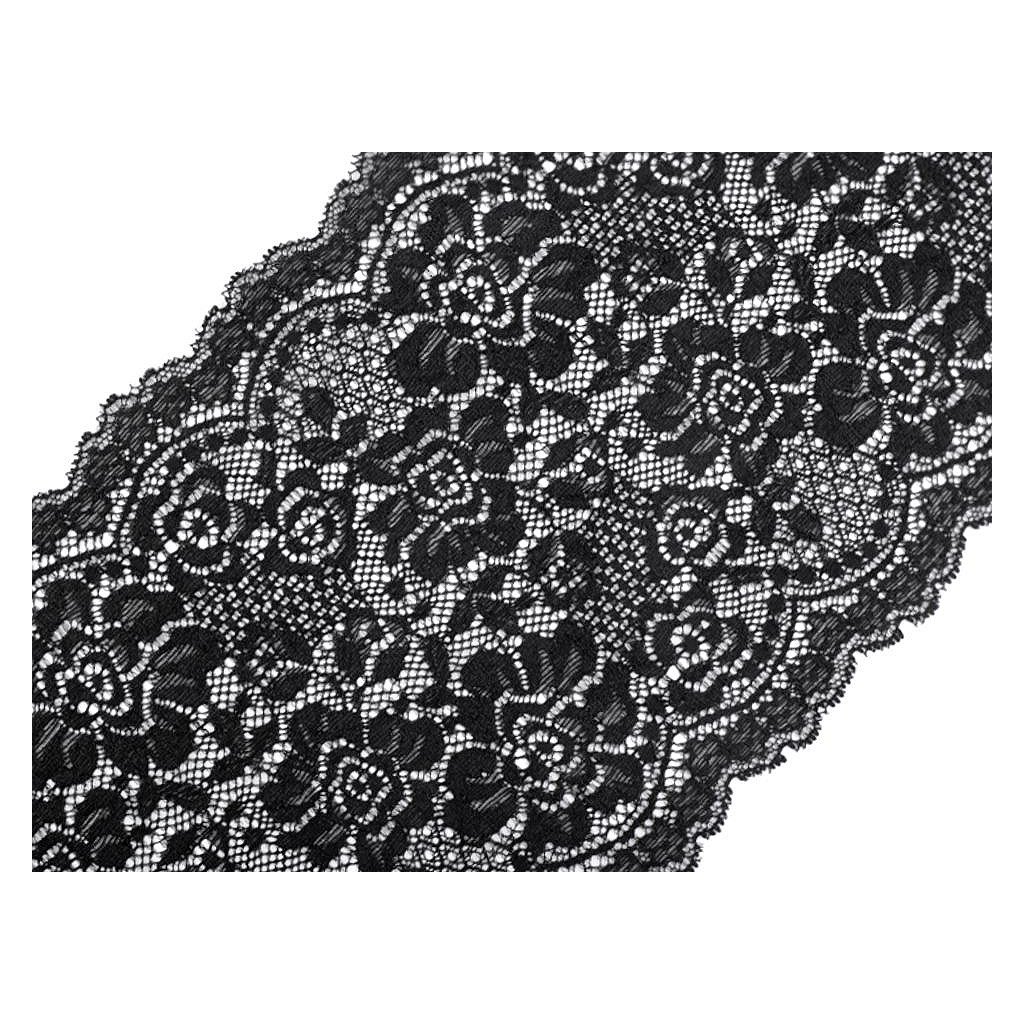 Elegantní krajka je pružná. Zdobí ji květinové motivy.