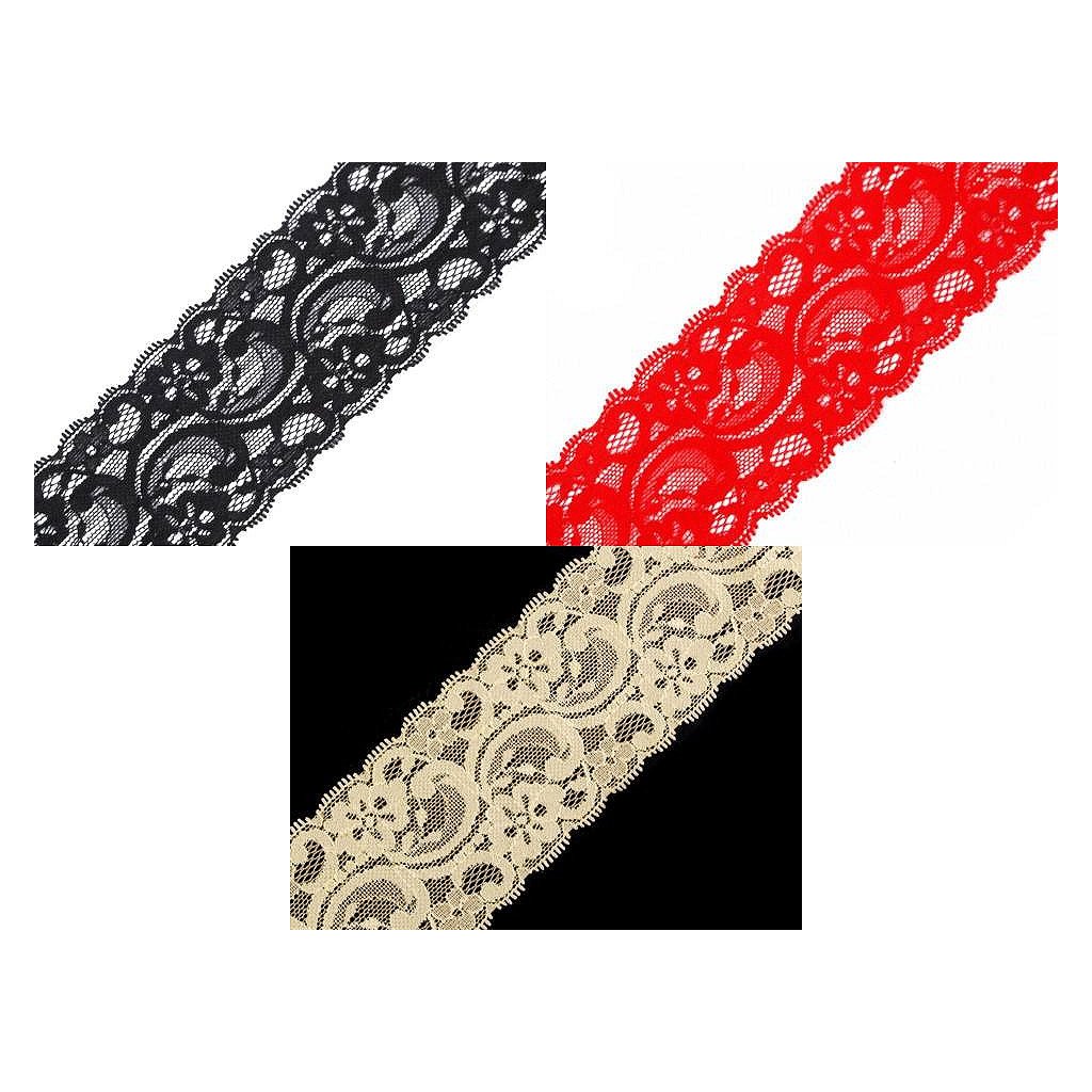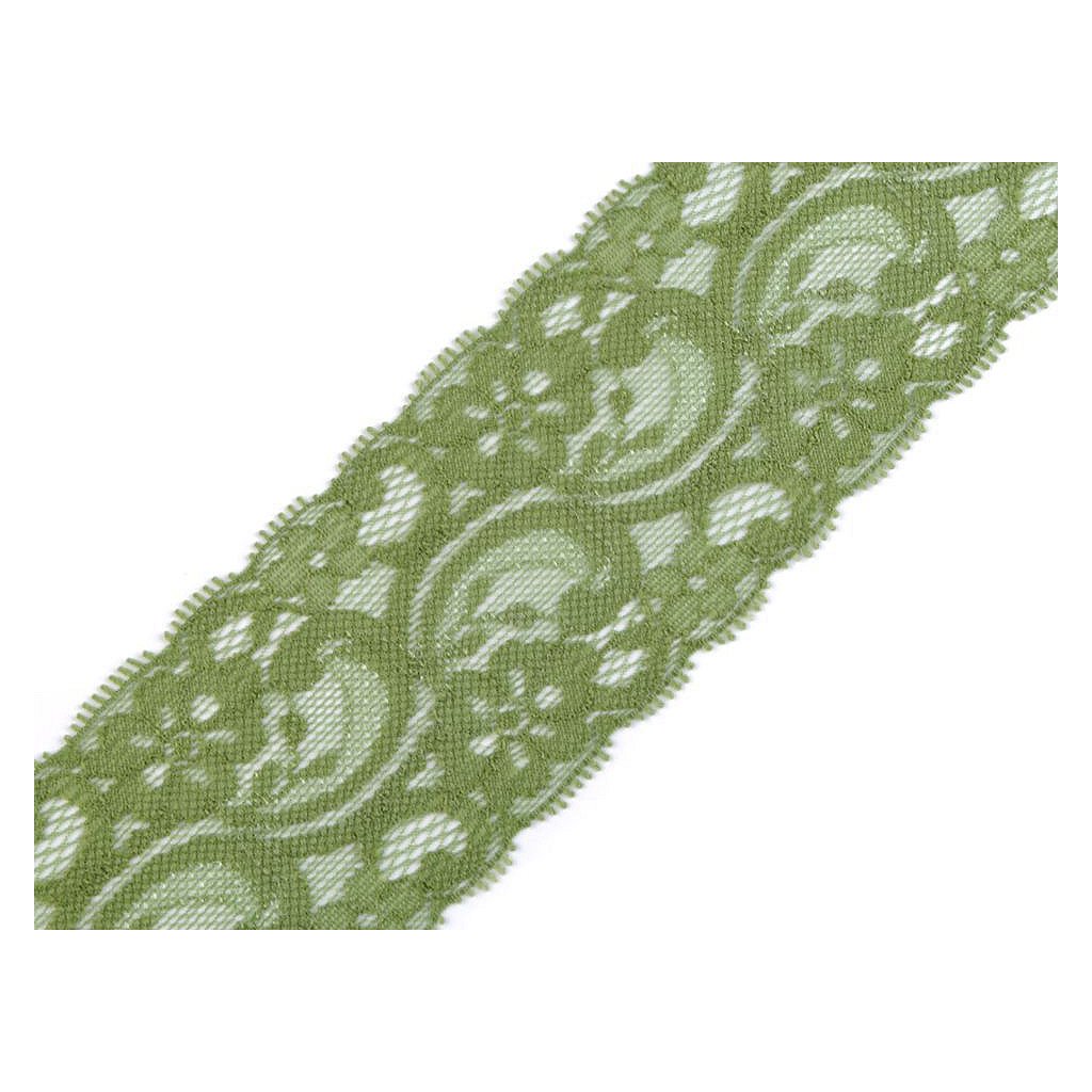 Elastická krajka o šíři 55 mm je vyrobená z kvalitního polyamidu. Díky elastanu je krajka poměrně pružná. Nejčastěji se používá na lemování spodního prádla, lze ji ale použít i na dámská trika, sukně, ke zdobení přání atd.