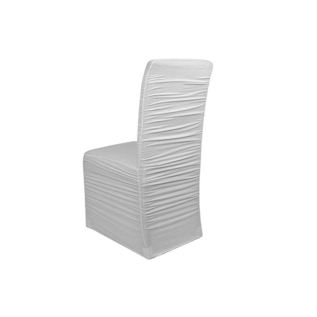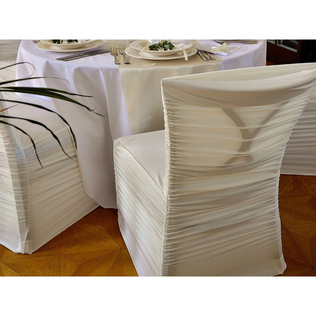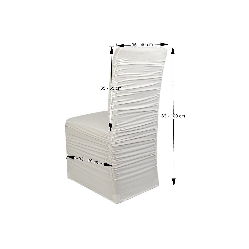 Elegantní návleky ochrání vaše židle před poškozením nebo zkrášlí židle při různých příležitostech. Díky nařasení působí velmi noblesně. Návleky mají ve spodní části kapsičky pro navlečení na nohy židlí. Jsou vhodné jak pro rovná, tak i kulatá opěradla. Můžete je použít i v domácnosti jako potahy na židle.- Celková výška: 86 - 100 cm