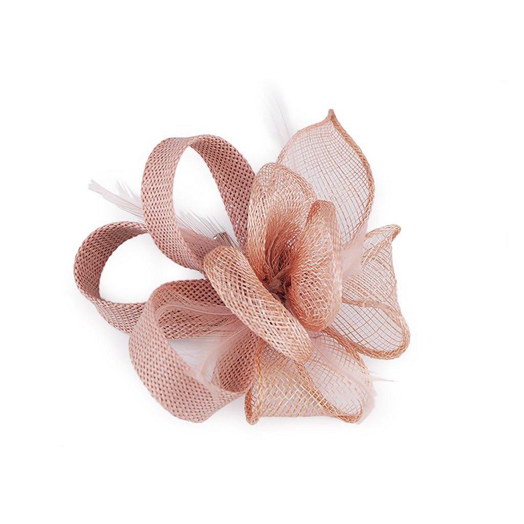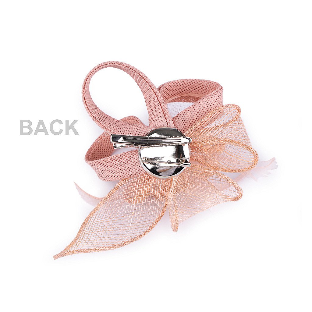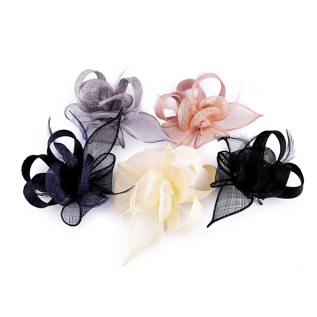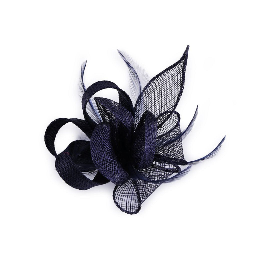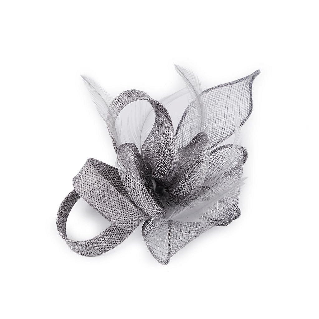Elegantní fascinátor se hodí pro slavnostní příležitosti, na plesy či do divadla. Můžete ho využít i jako nepřehlédnutelnou brož. Je vyrobený z modistické síťky, která je tvarovaná do okvětních listů a různě velkých smyček. Celek tvoří zajímavý vzdušný květ, který je dozdobený peřím.