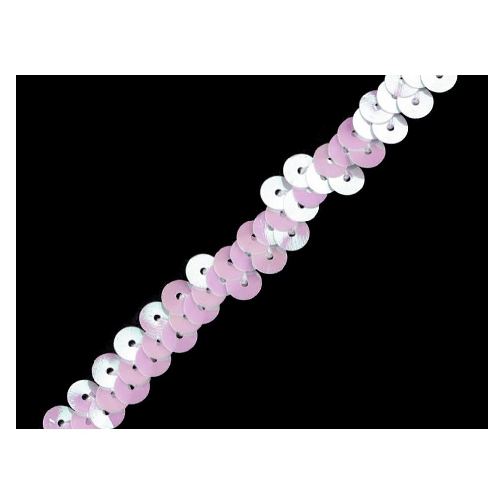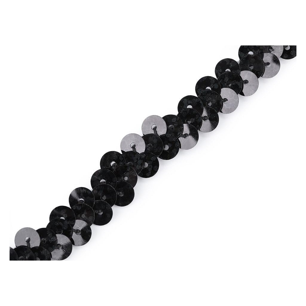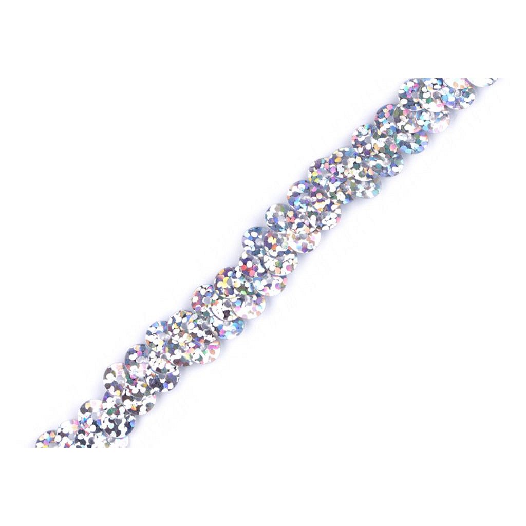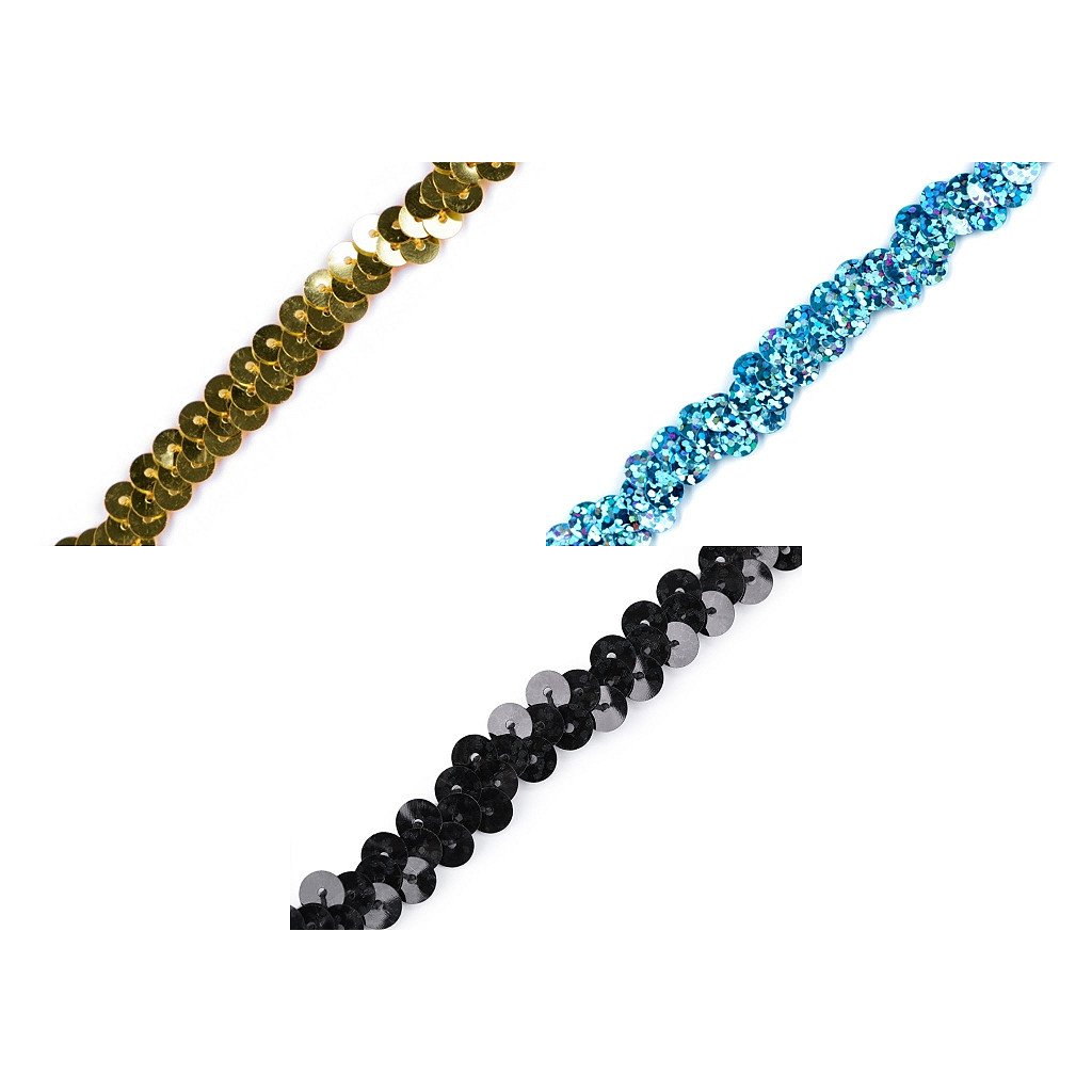 Elastický flitrový prýmek je velice efektní. Usnadní vám práci s jednotlivým našíváním flitrů. Flitry jsou připevněné na tenkou pruženku cik - cak způsobem. Působí, že jsou ve třech řadách. Po maximálním natažení pruženky se seřadí do jedné řady.