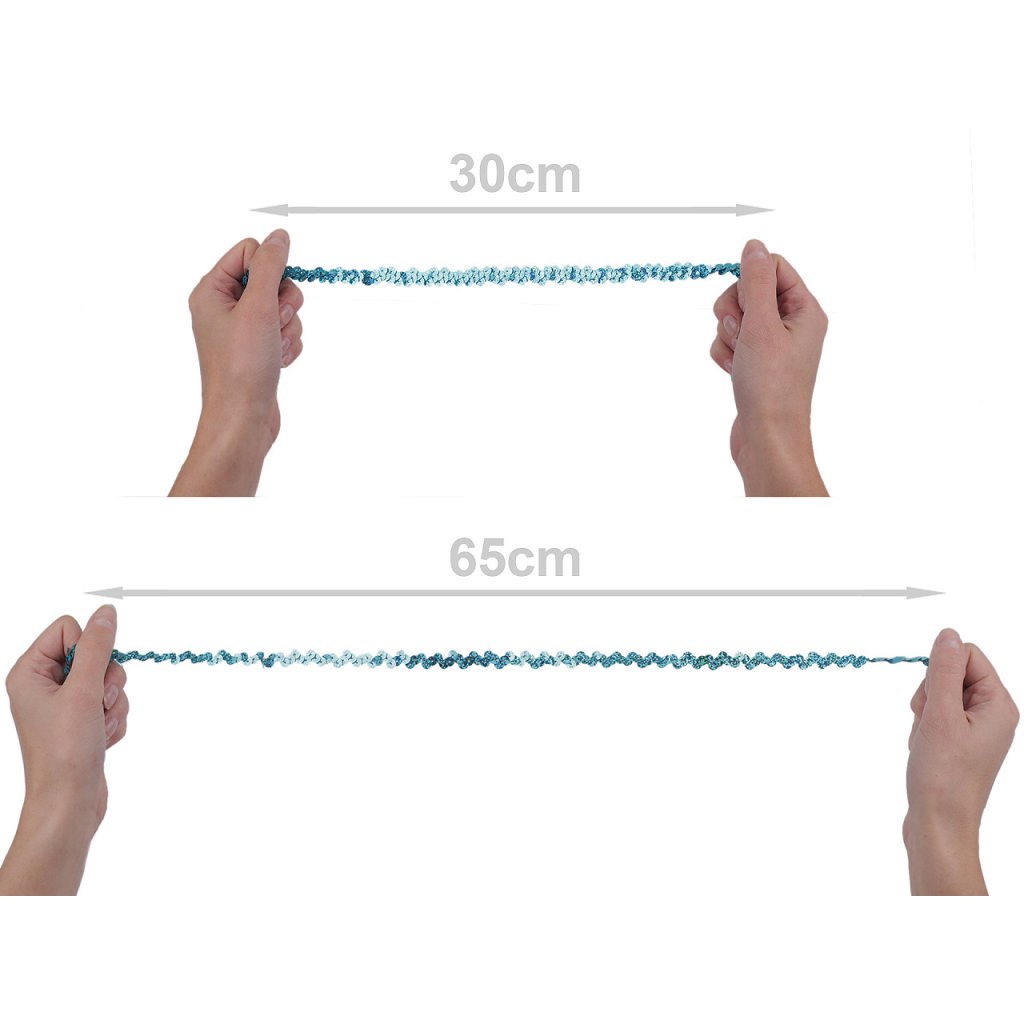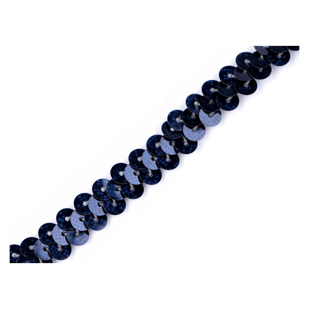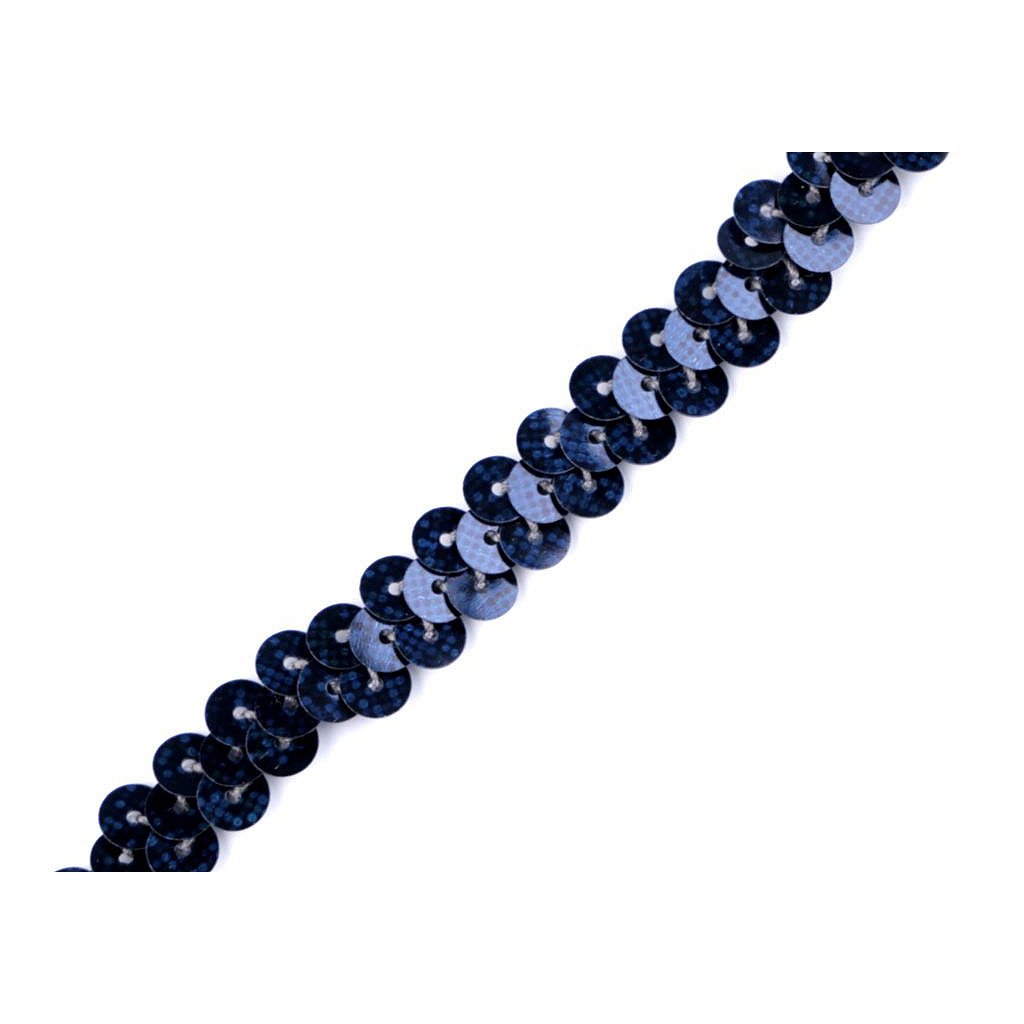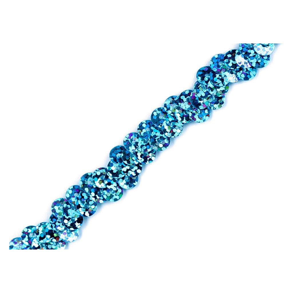 Elastický flitrový prýmek je velice efektní. Usnadní vám práci s jednotlivým našíváním flitrů. Flitry jsou připevněné na tenkou pruženku cik - cak způsobem. Působí, že jsou ve třech řadách. Po maximálním natažení pruženky se seřadí do jedné řady.