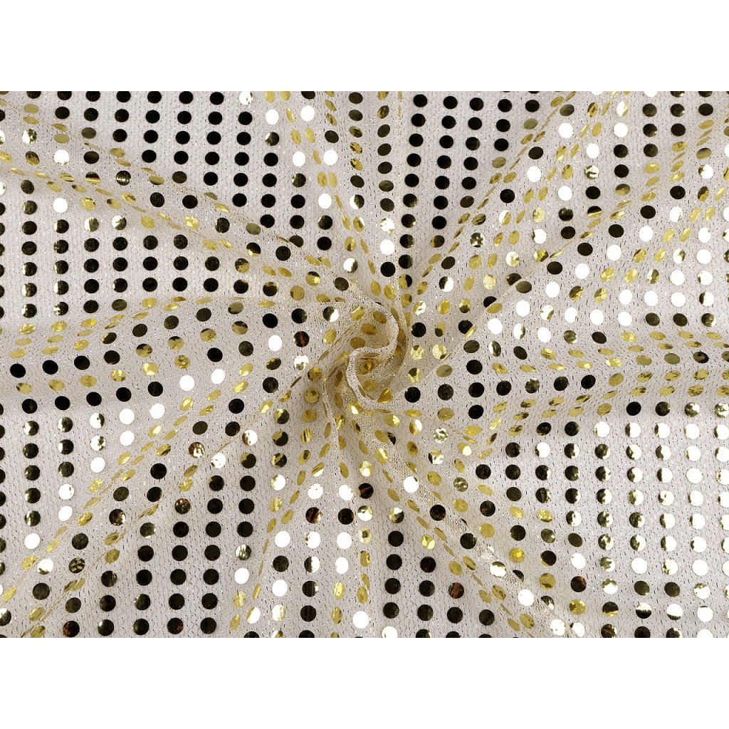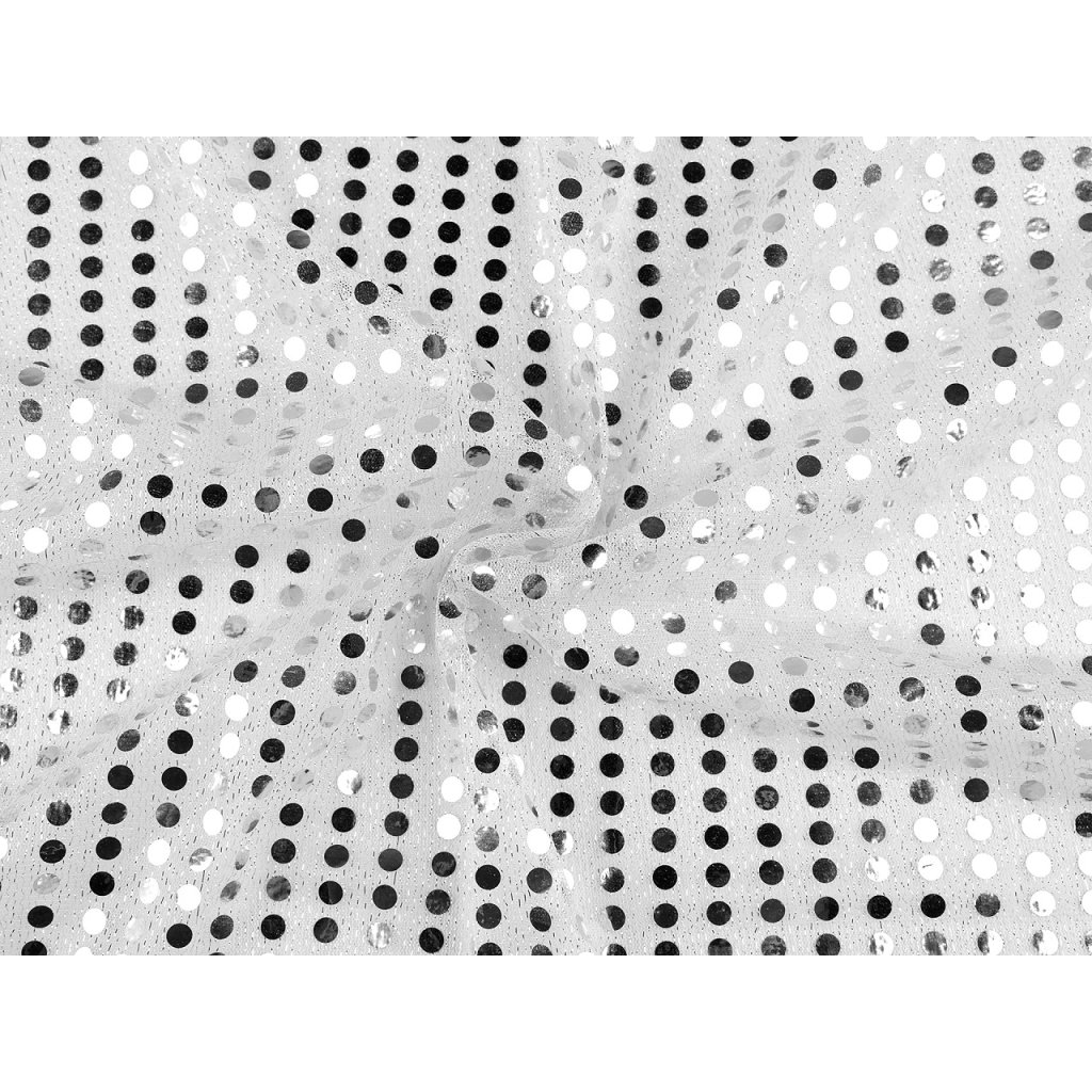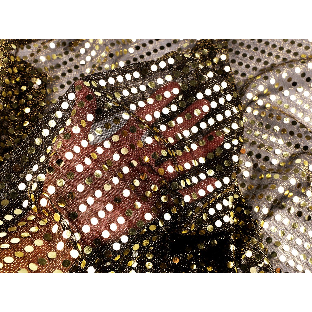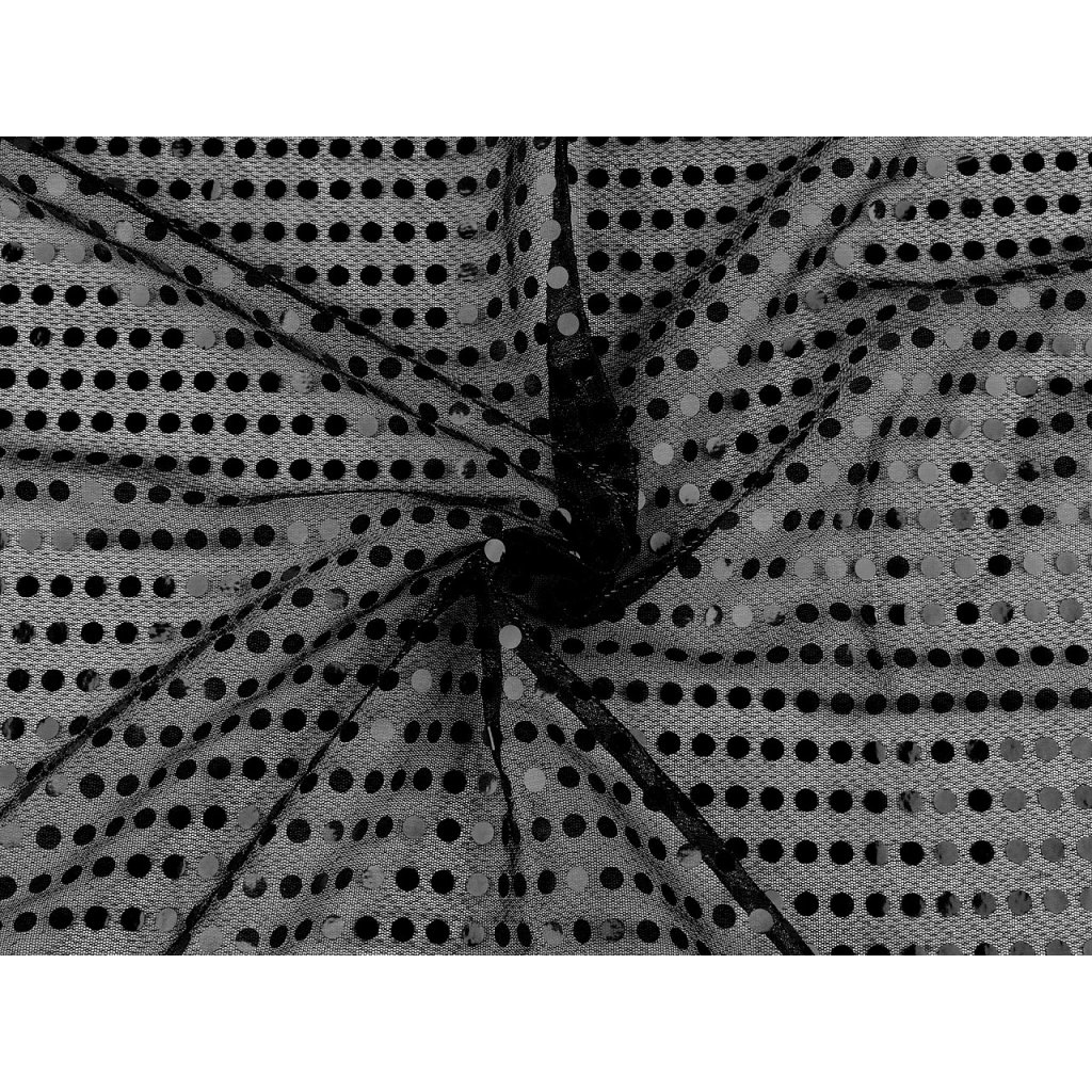 Jemný flitrový úplet je vhodný na šití tanečních a karnevalových kostýmů, plesových šatů, halenek i doplňků. Efektně se leskne. Aplikované flitry dobře drží.