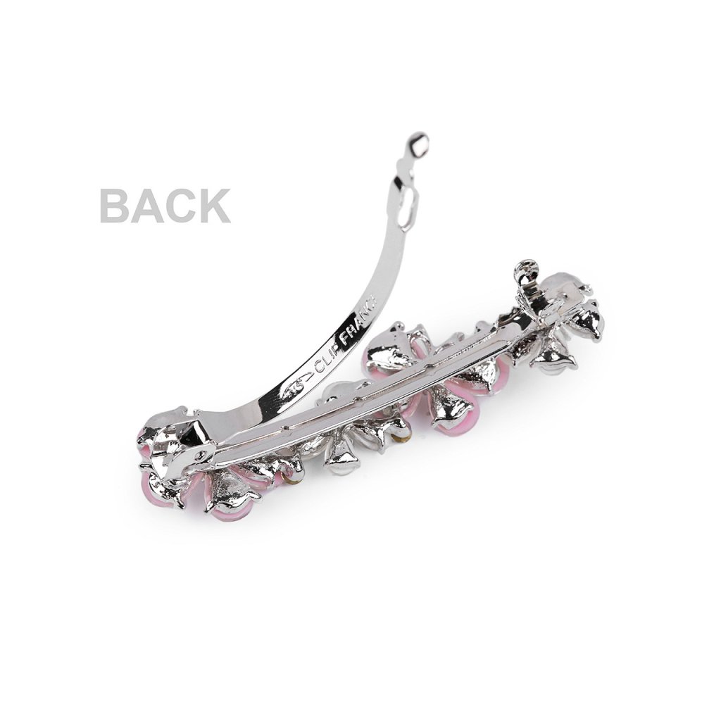 Zdobená francouzská spona luxusně ozdobí slavnostní účes. Díky zakomponovaným broušeným kamínkům se oslnivě třpytí. Má velmi kvalitní celokovové provedení. Zacvakávací mechanismus je pevný.