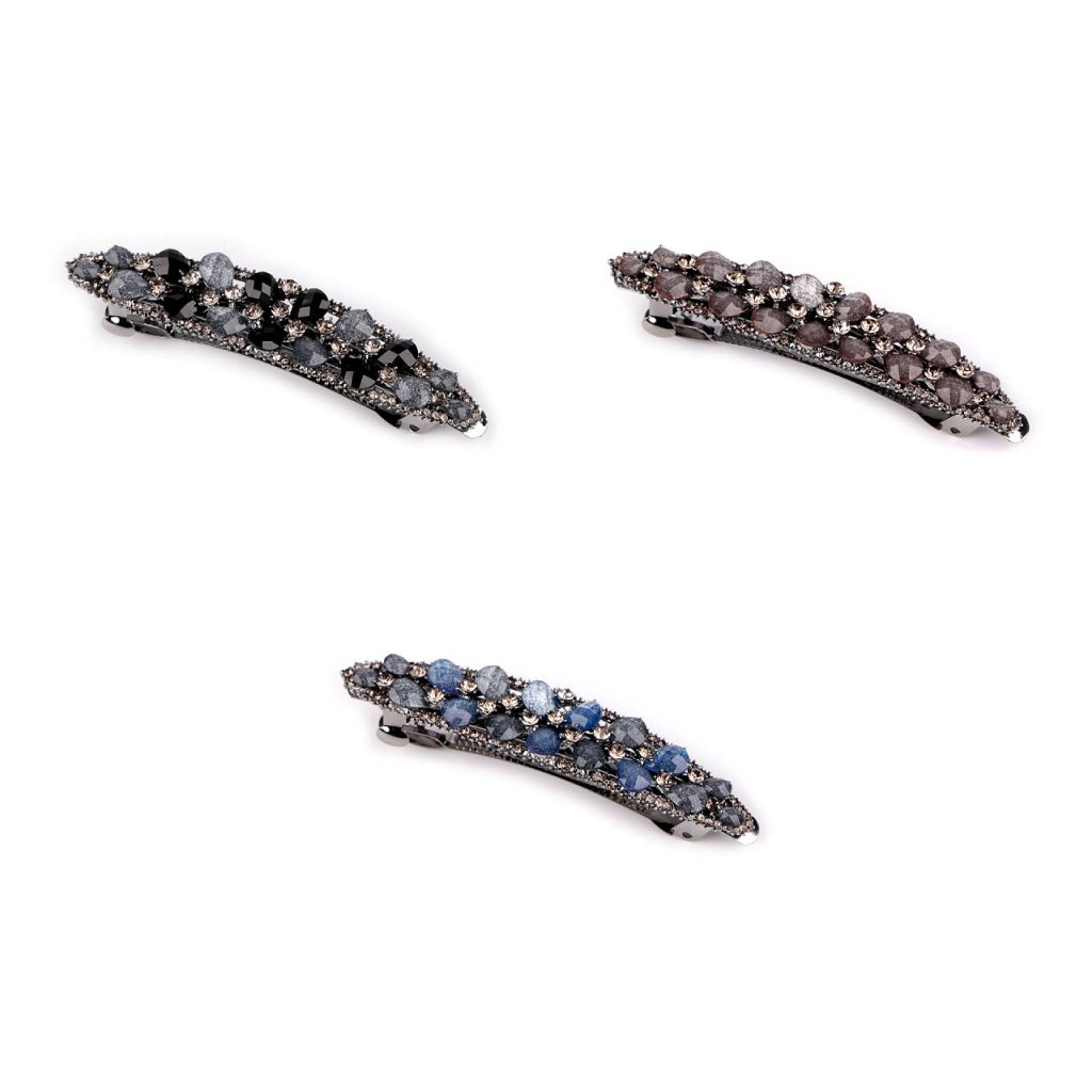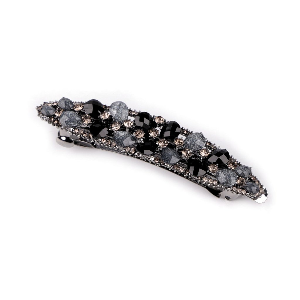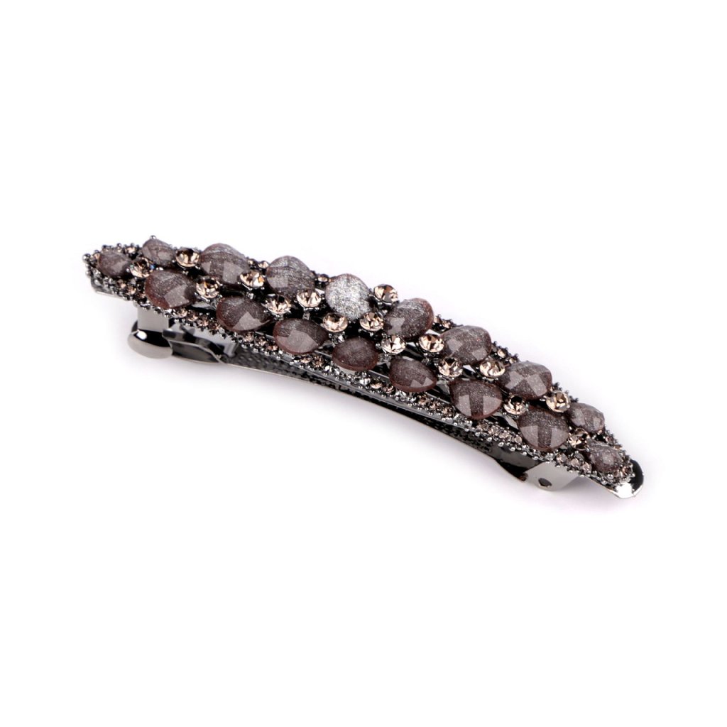 Francouzská spona zdobená akrylátovými broušenými kameny luxusně ozdobí váš účes. Má nádherný lesk, který přitahuje pozornost. Luxusně ozdobí slavnostní účes. Ať už máte jemné prameny nebo husté lokny, touto sponou snadno sepnete vlasy do copu nebo vytvoříte elegantní drdol, který bude vypadat, jako kdyby ho vytvořil profesionál. Spona má velmi kvalitní celokovové provedení. Zacvakávací mechanismus je pevný.